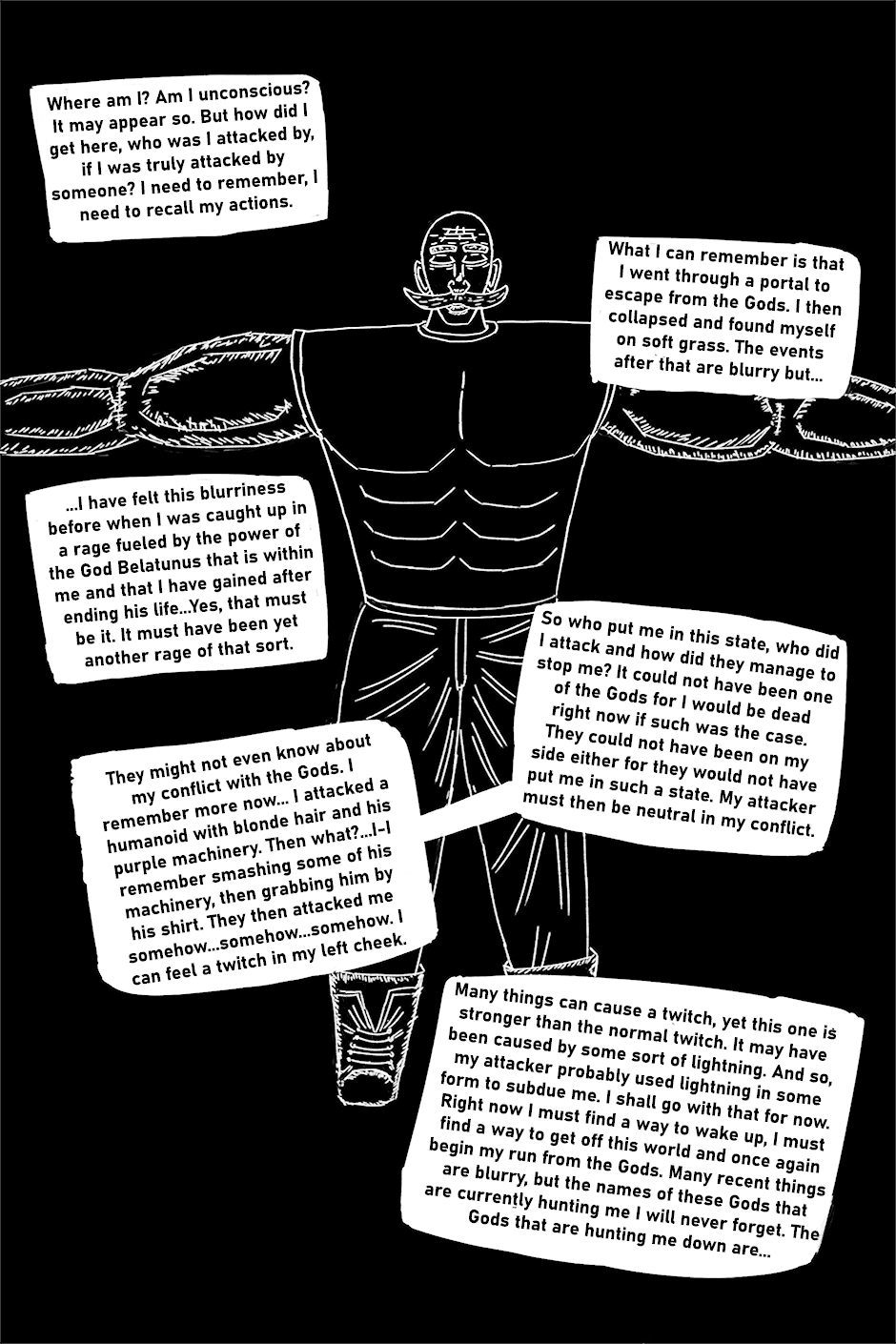 In a universe unlike our own, on a planet similar to Earth, in a city that resembles those of modern times, the Hero, Thaughtyboon, endlessly battles the Villain, D.M. Rhow. This is a retelling of one of their struggles, narrated by the failure himself, Rhow.