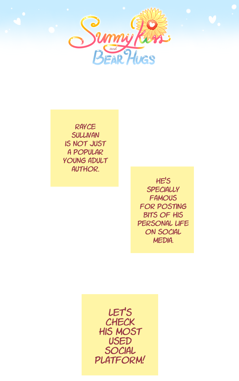 This chapter was so unbearably cute ʕっ•ᴥ•ʔっ I love them!! I'd love to see Eli's sns as well ✨❤️
