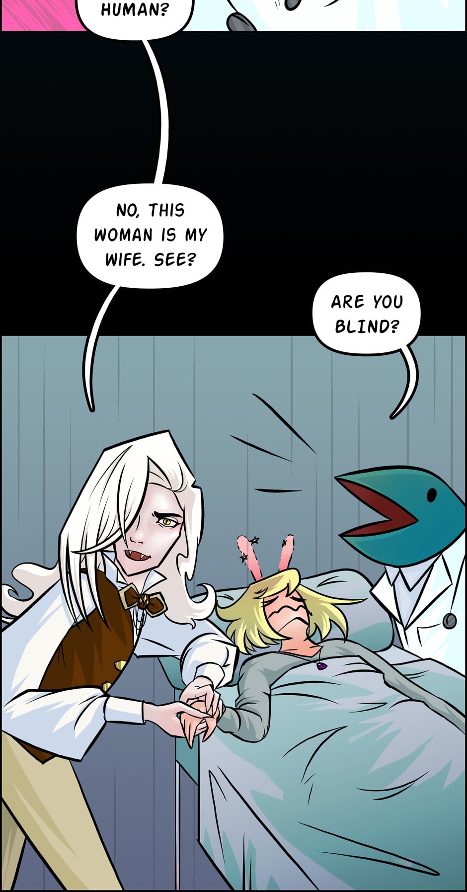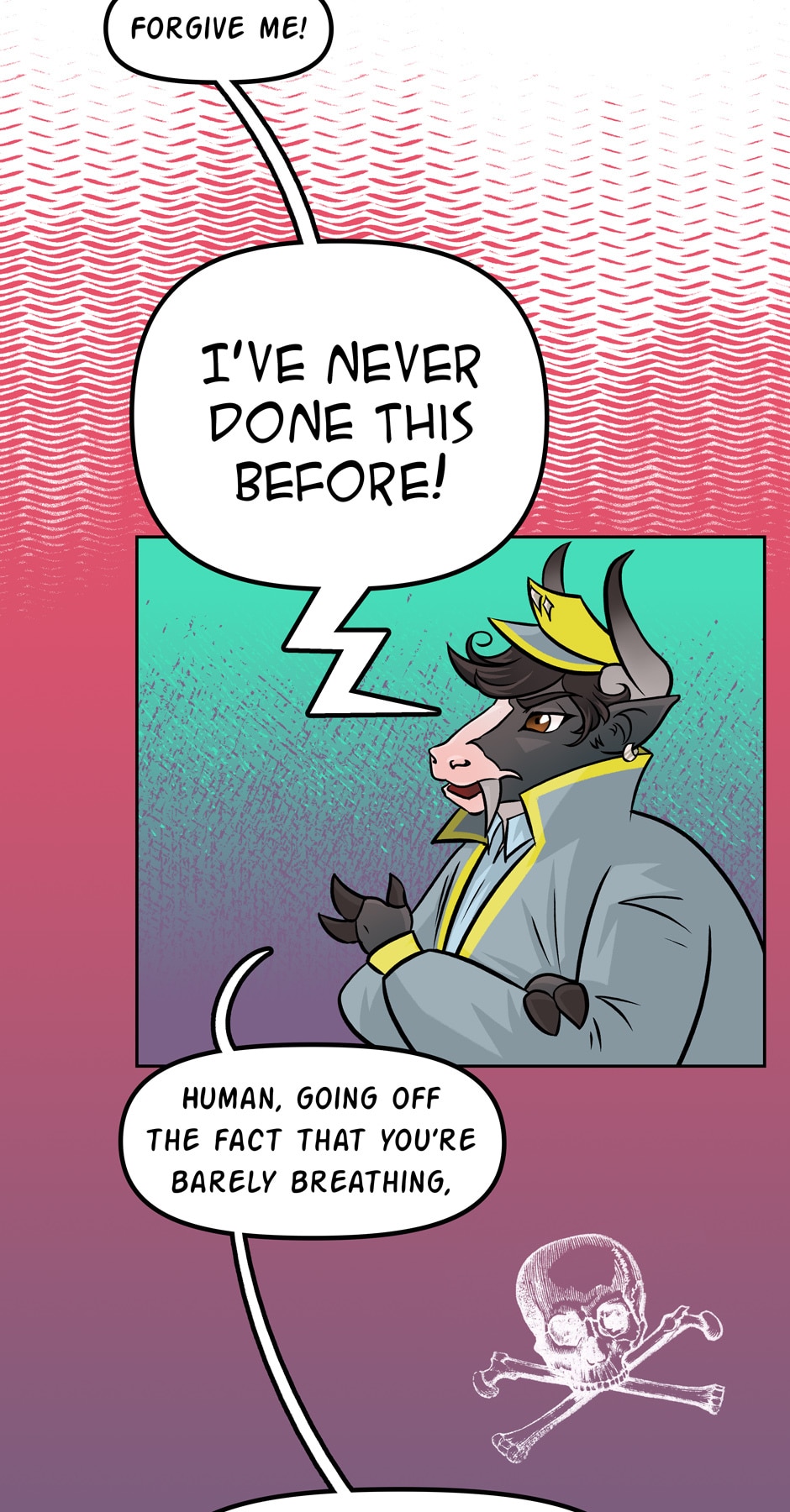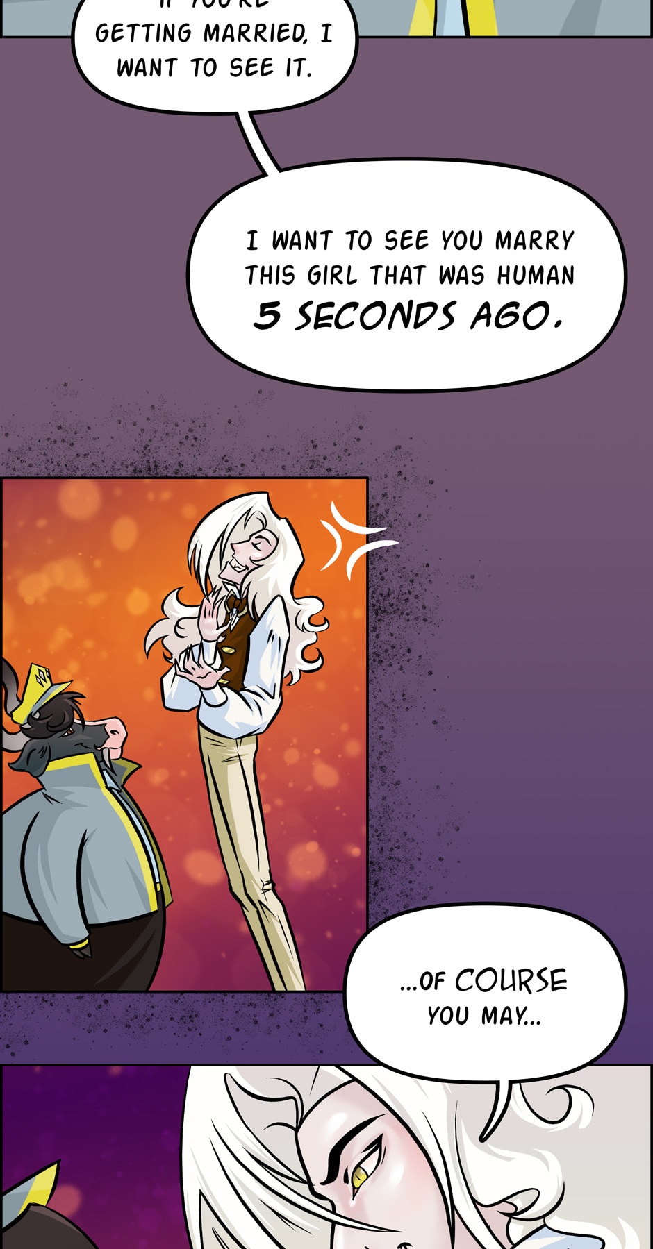 Also, in case you forgot (since it's 2 weeks between updates, it's easy to forget) Meredith is still under the effects of Mamma Orso's truth fish. So...she'd like to lie, but kinda can't.