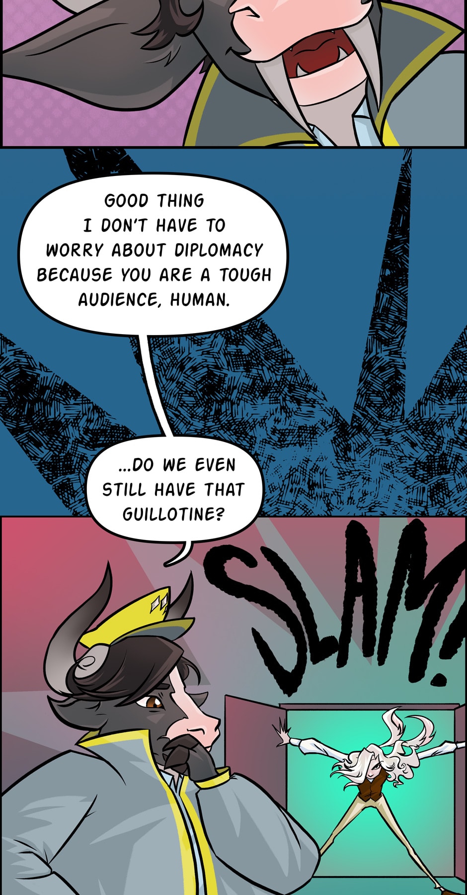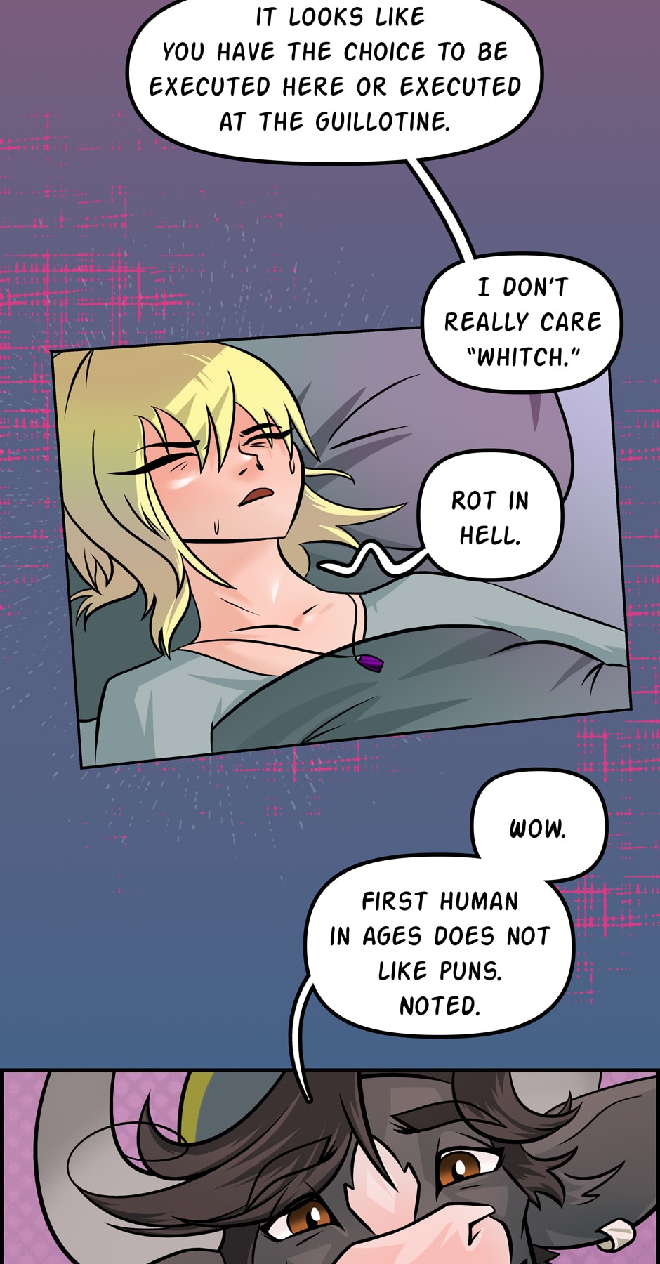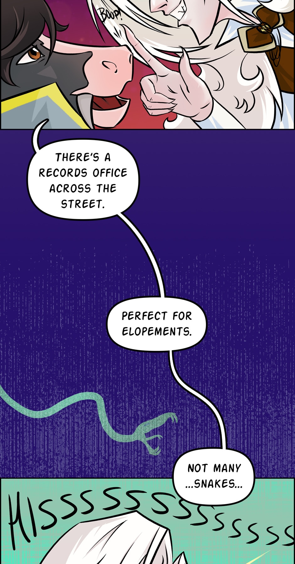 Also, in case you forgot (since it's 2 weeks between updates, it's easy to forget) Meredith is still under the effects of Mamma Orso's truth fish. So...she'd like to lie, but kinda can't.