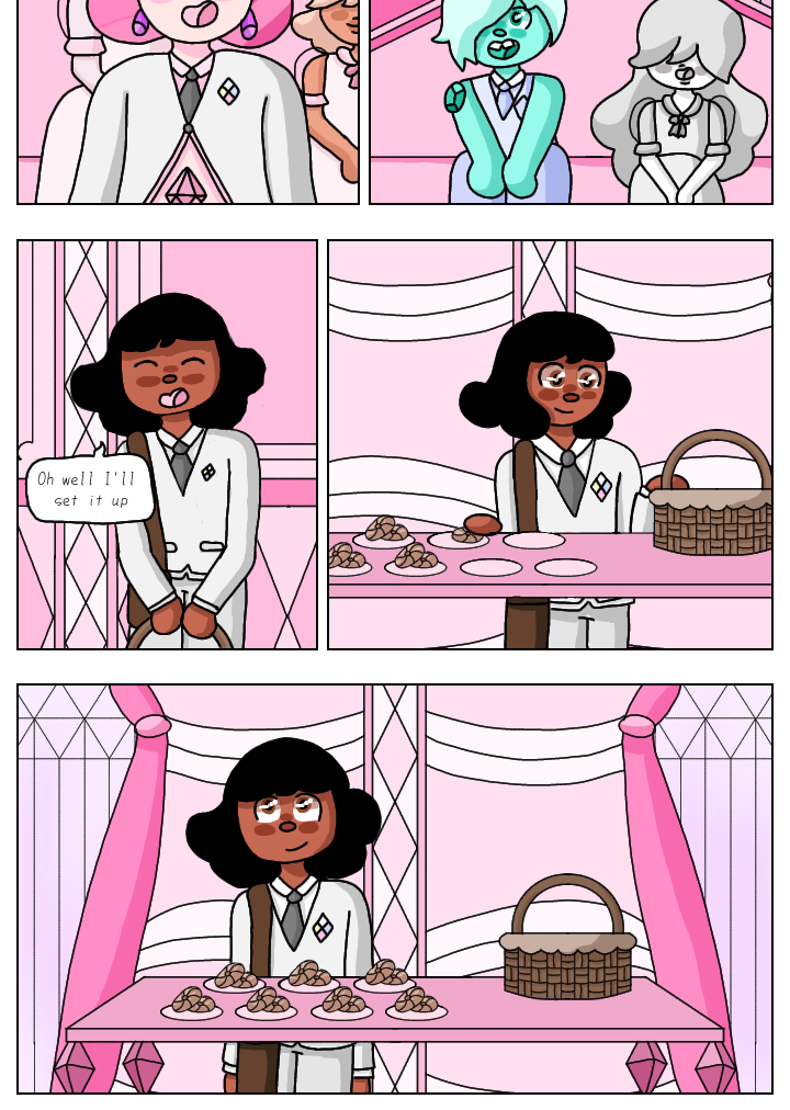 After a long day of school Connie goes to her new clubroom. She finds the Steven's, all four of them and during the club she tries to serve the gems food.