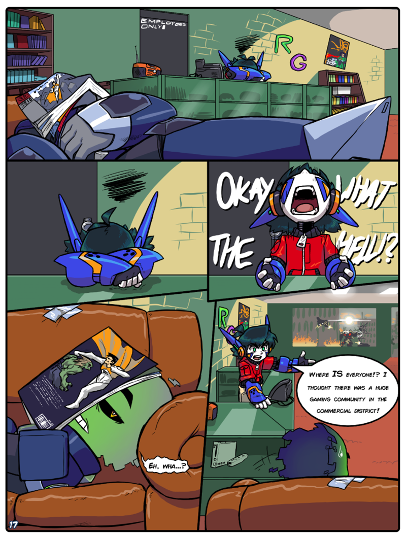 Cobalt's frustration with the quiet around the game shop reaches a head, while our mystery robot wreaks havoc outside.