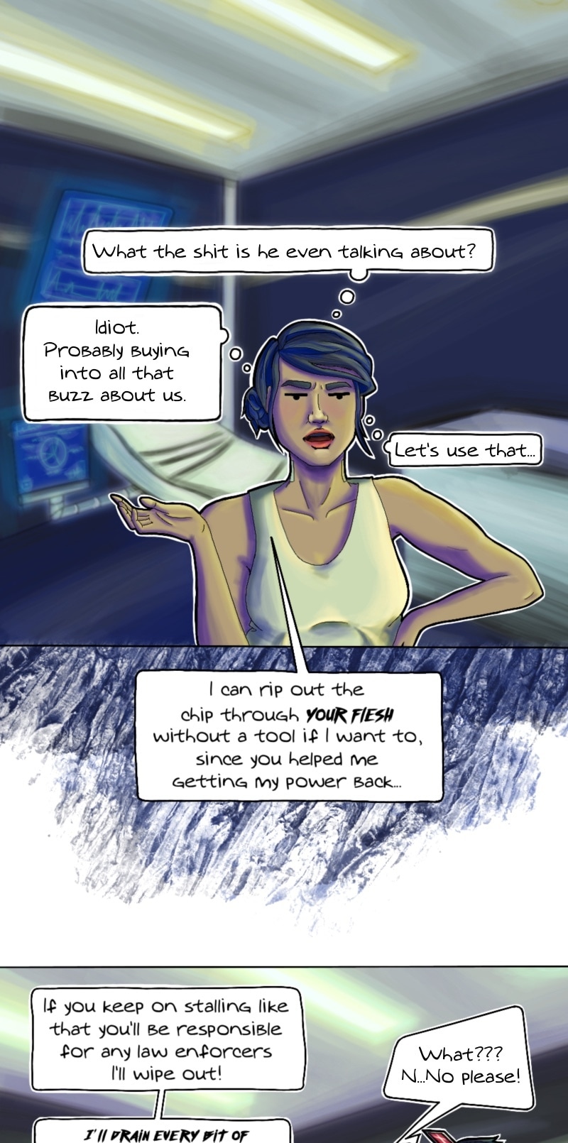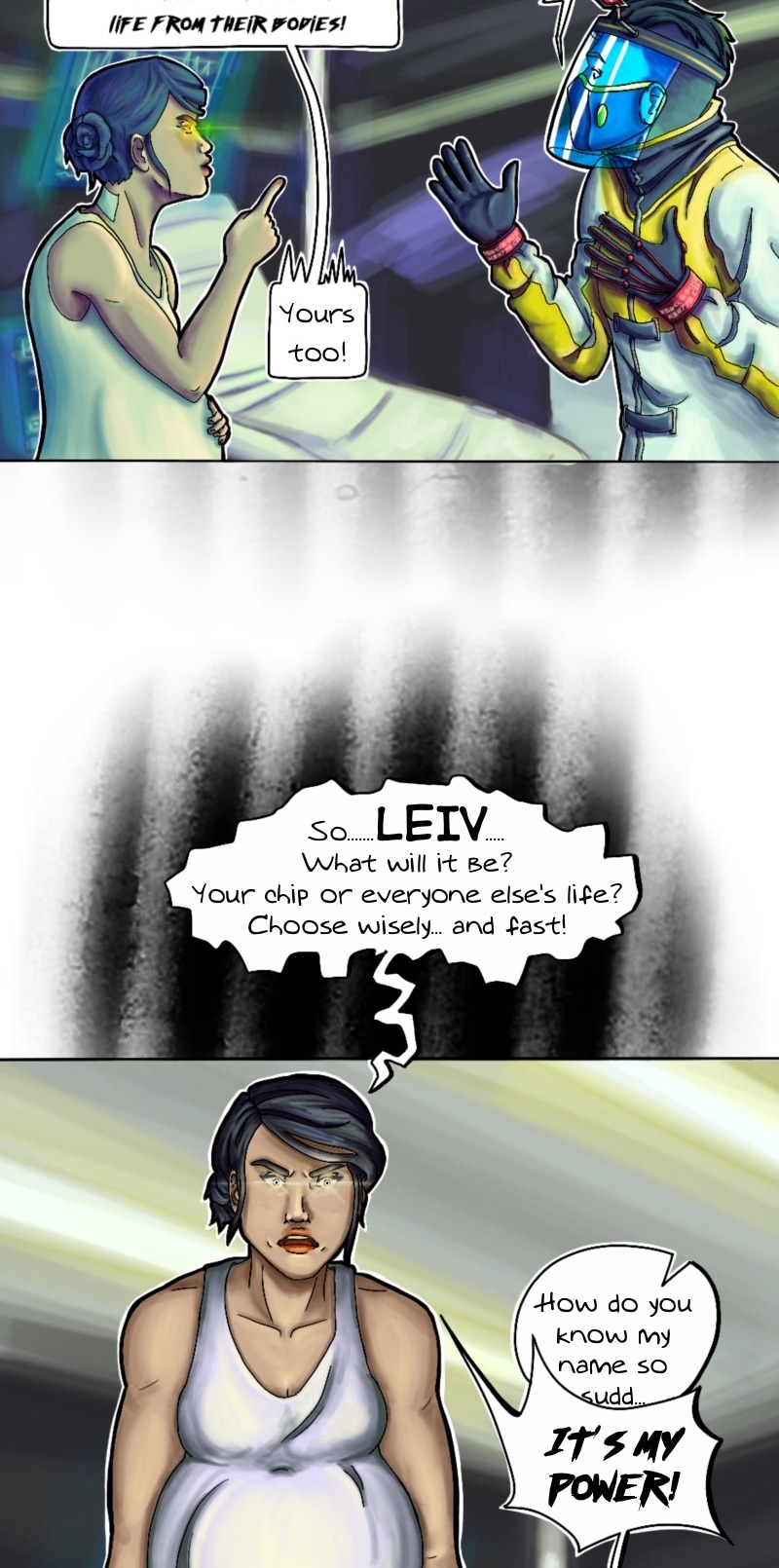 We got a name for the green guy! It's LEIV. And she somehow found it out with her powers...maybe. If the rumors about people like her are true.