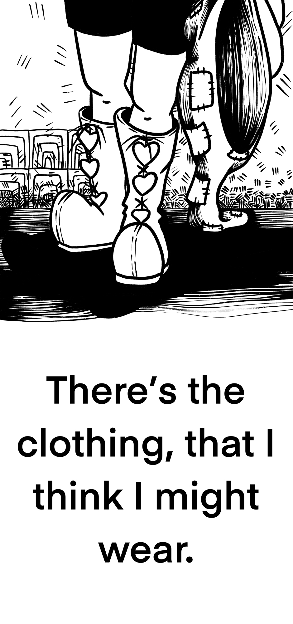 I've been thinking about spring cleaning, and getting rid of some things. I realized I generally have three kinds of clothing in my closet. Chuckles, what about you?