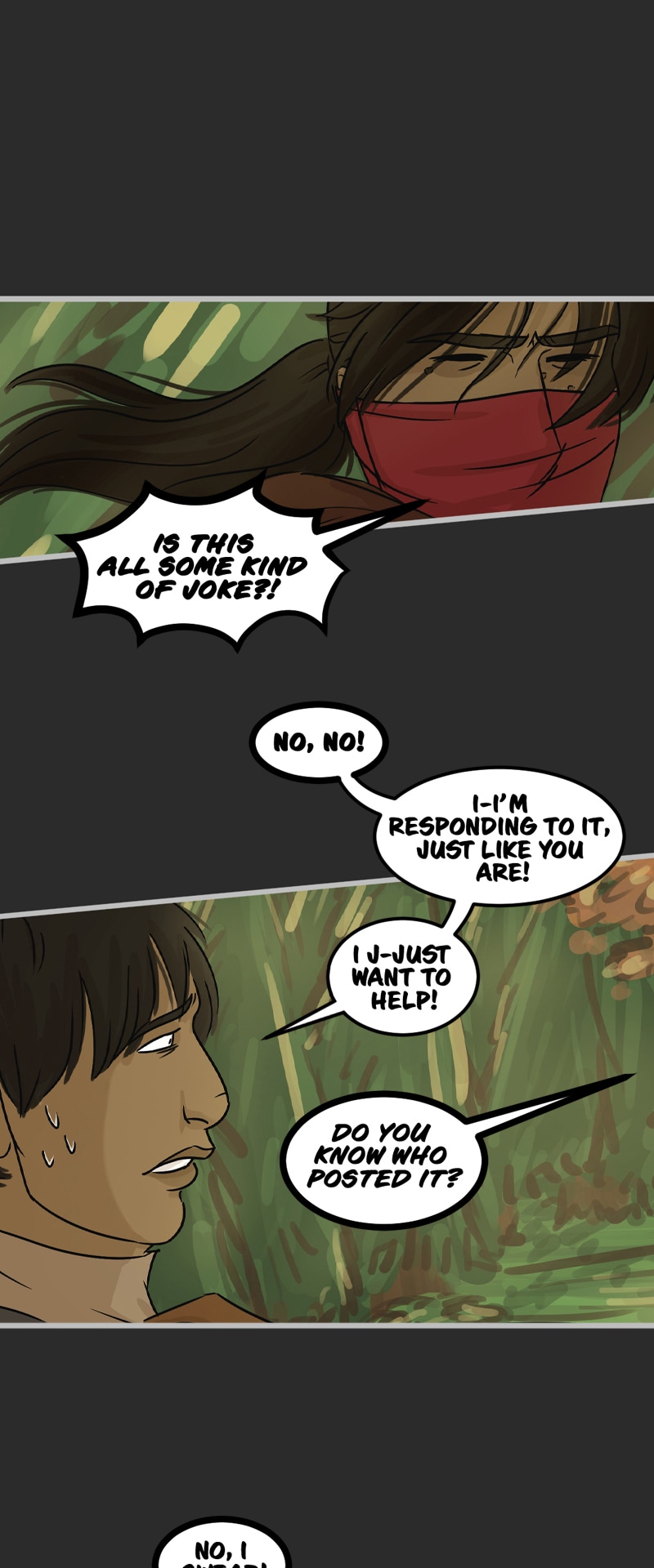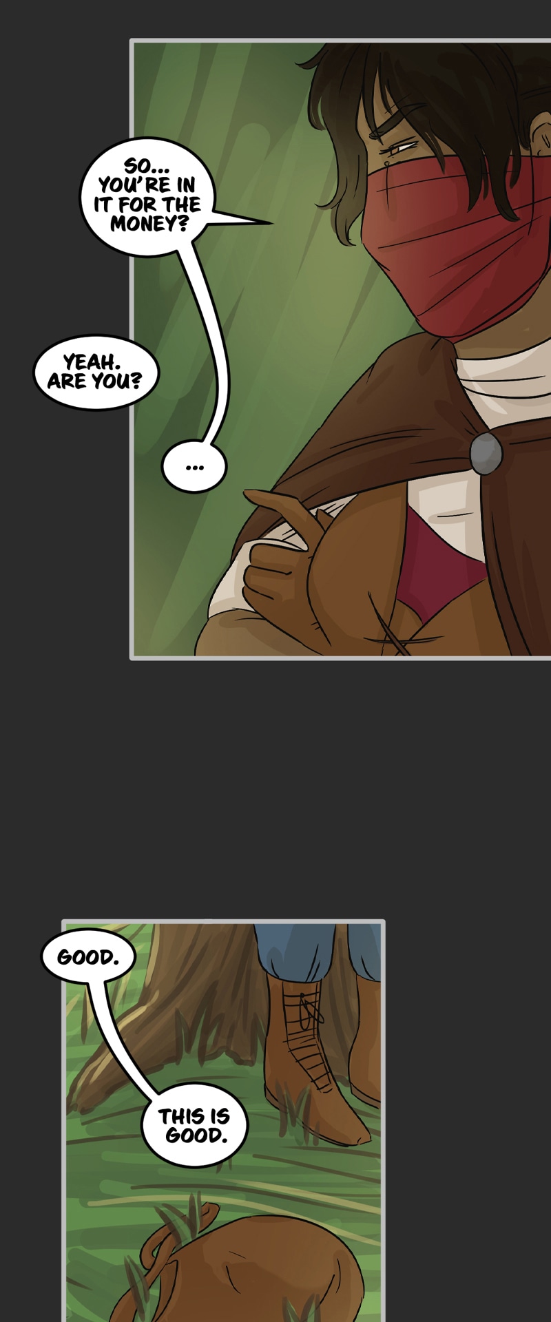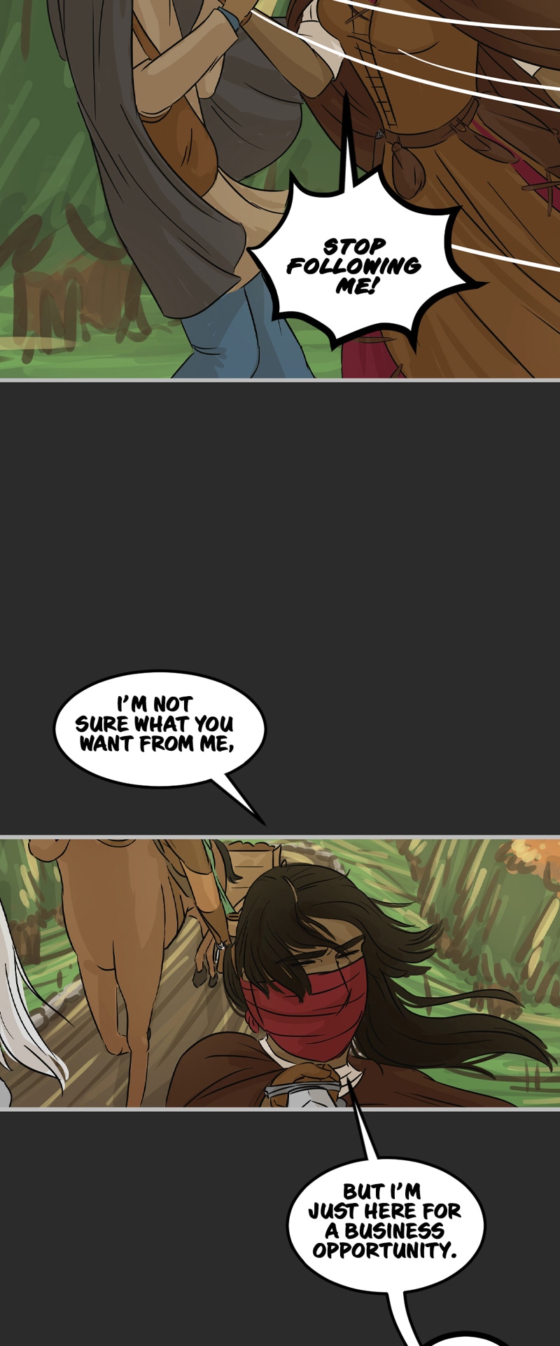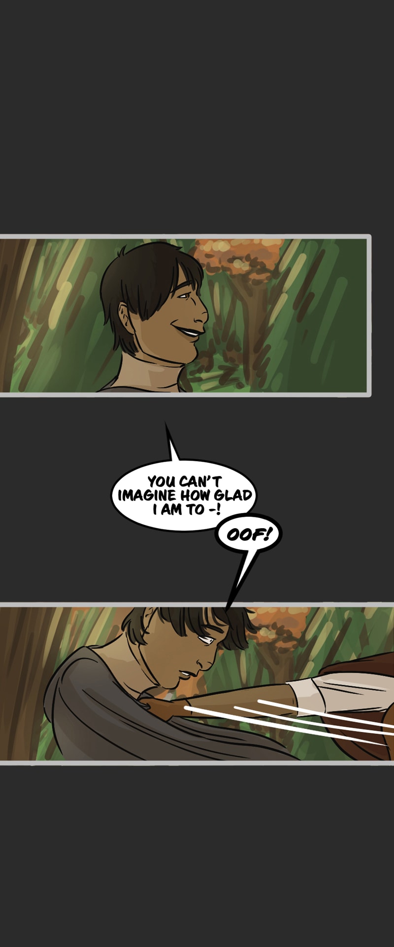 In the kingdom of Tenebria, where magic is fueled by fire and the status quo is king, waves are made when a noble lord and his daughter suddenly disappear, leaving behind them only rumors and a mysterious letter. Four unlikely heroes must answer the call and solve the mystery of an abandoned house and its terrifying monster -- and they discover in the process that nothing is truly as it seems. Featuring a found family, queer romance, and big fluffy birds. Updates every other Monday.