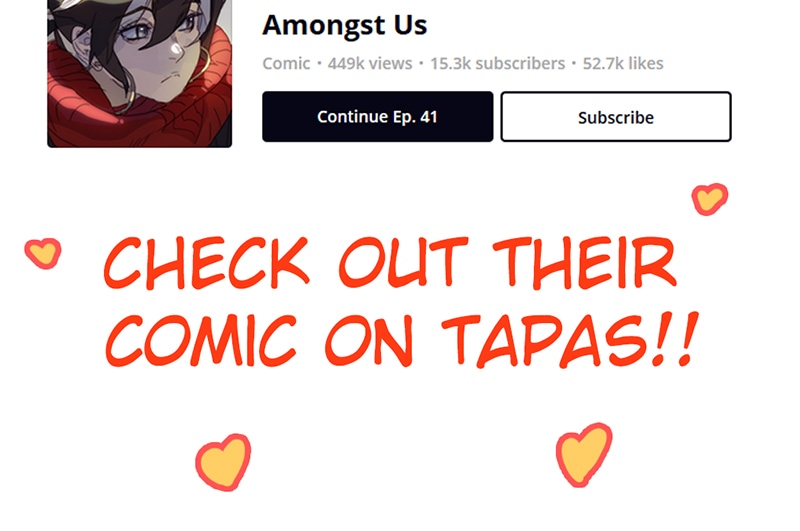Page 95! A new page every Tuesday and Friday! Also today's guest are Veloce and Blackbird from Amongst us/Carciphona by Shilin! Check out their comics, they are great!!! >> https://tapas.io/series/au/info