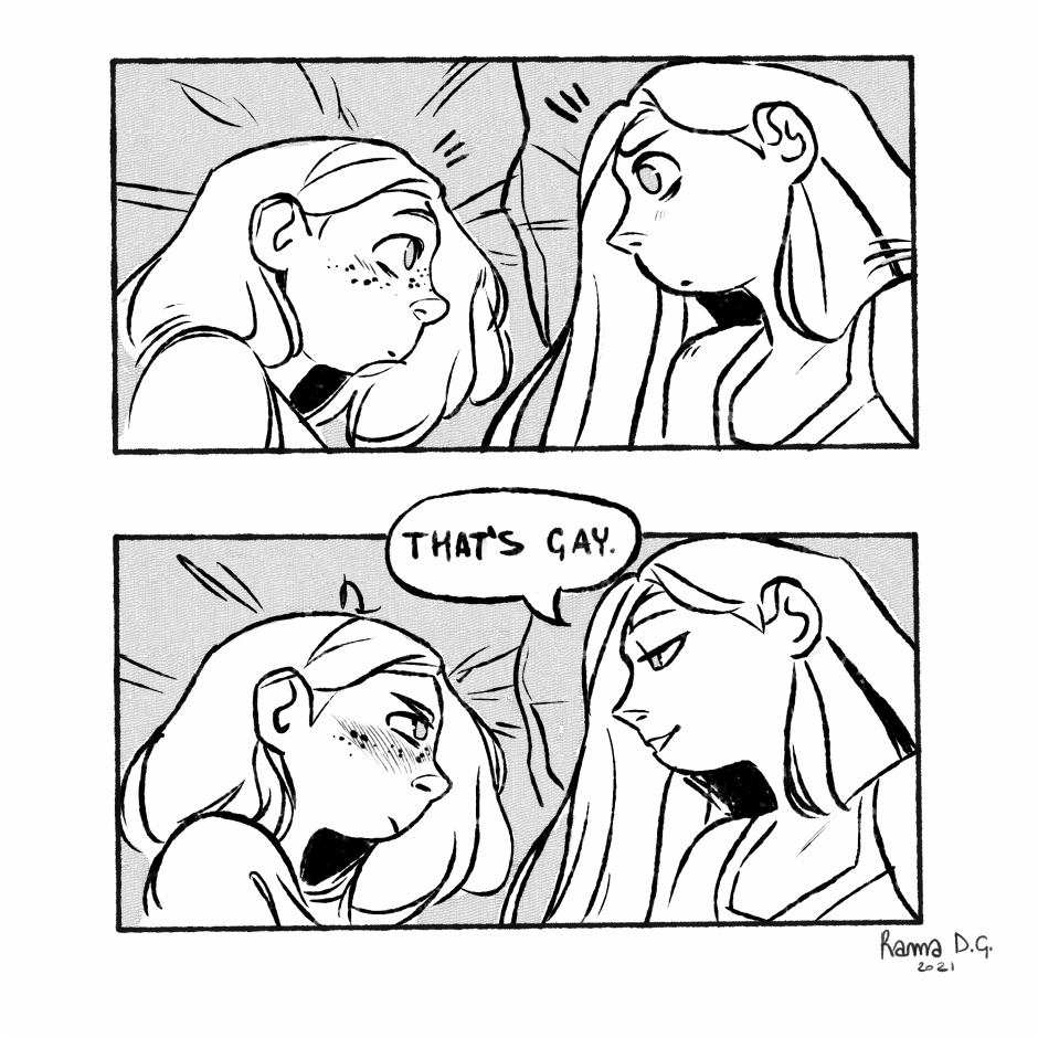 about this sketch: I was, like, very conflicted about this sentence: "that's gay". That's because I don't want romance between Eva e Fran.. but sometimes you have to take things as they come, and the characters speak for themselves. It's up to you to decide what relationship there is between our two protagonists!