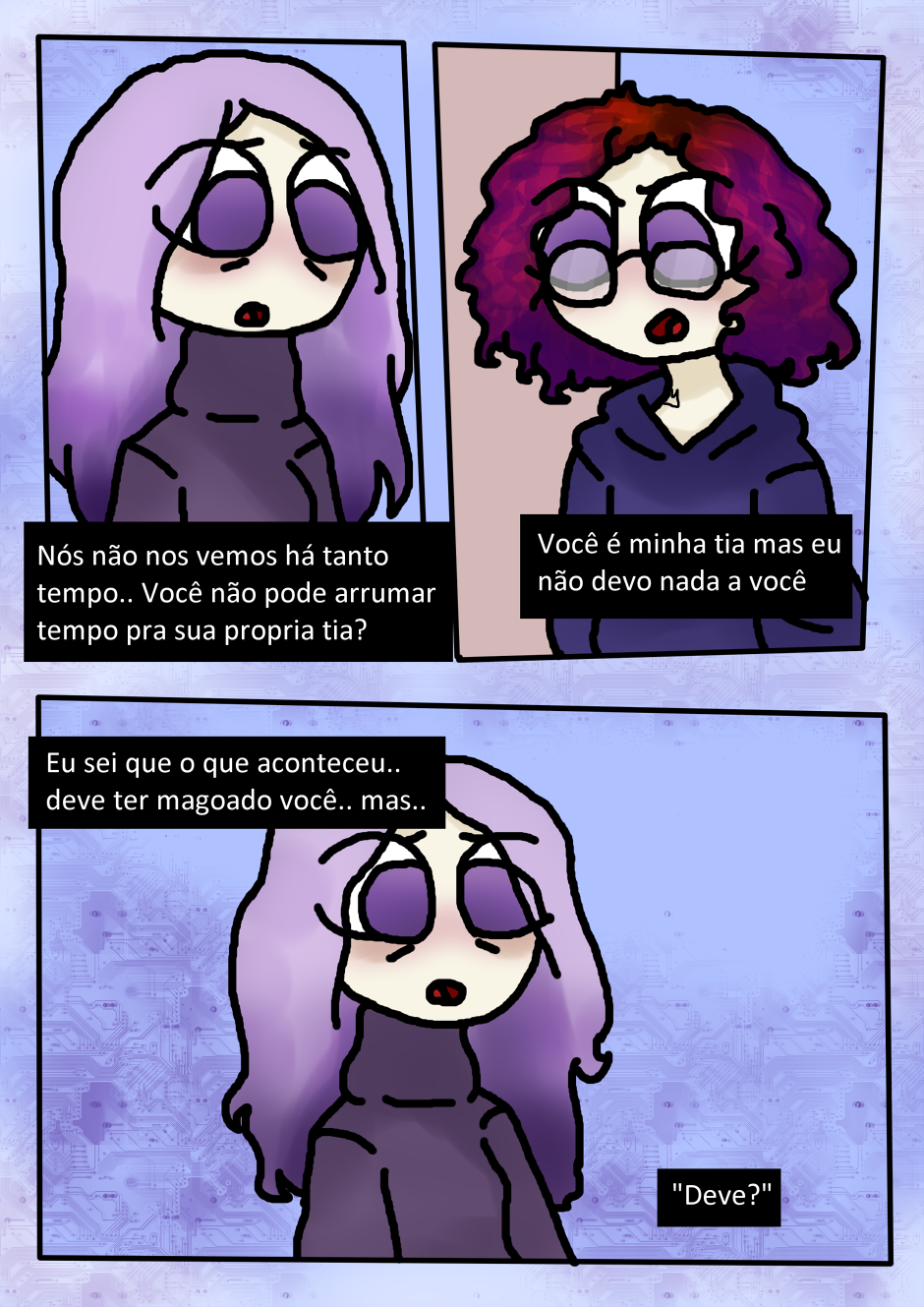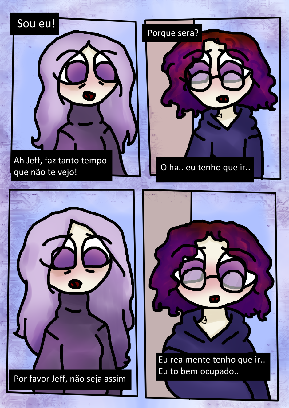💜💜 o estilo da sua HQ é mt fofo, eu tô muito ansiosa pra saber o que vai acontecer, e conhecer mais os personagens