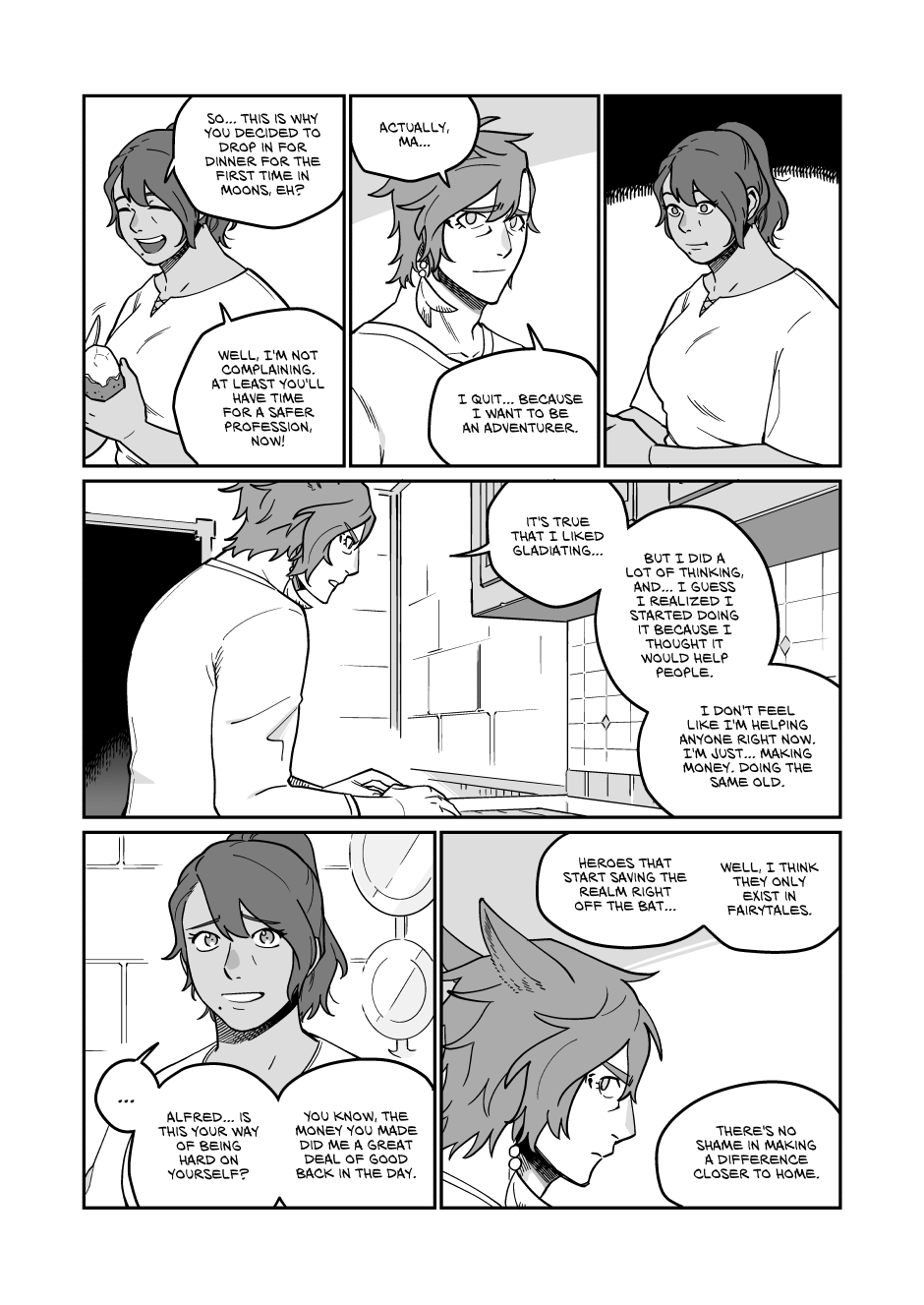 Aaaaaaah i love this part of the arc, getting to know more about Alfred's past is so good, bearing the role of a heel so he can support his Mama and finally got his justice by saying NO MORE! AAAhhhhhh sweet Catharsis! Also Svana is the best MOM ever, i want her to spoil me heheh