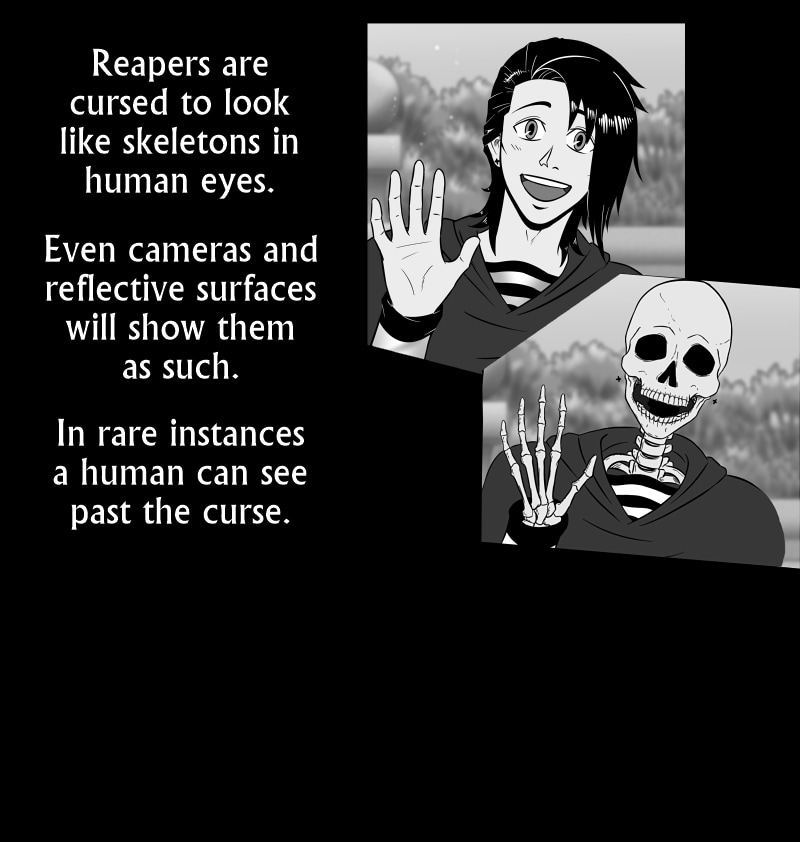 Morty is a reaper, but he wishes to befriend a human. It's not easy, since most humans see him as an intimidating skeleton, which makes it hard to start any friendship at all. However, one day Morty meets Lance who not only sees him as a regular person, but also believes that Morty is just a regular guy. Scared that Lance may reject him once he knows the truth, Morty decides to pretend to be a mortal himself.