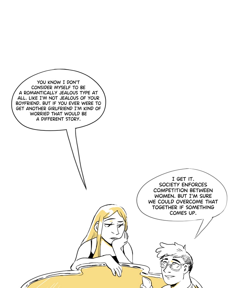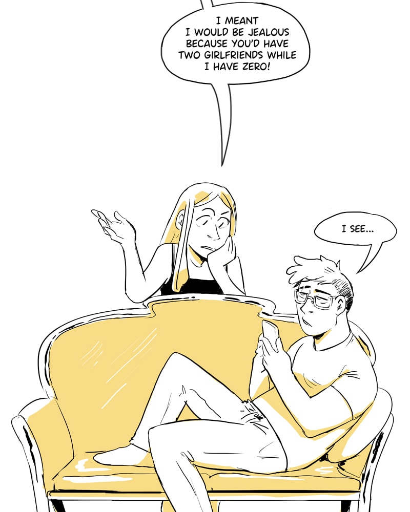 I hope this doesn't come to you as a disappointment. All of the comics aren't as long as the first Polyamory 101 comic. The length varies by a LOT! I already have these comics on my social media and Patreon! If you want to see them in advance, go to instagram or twitter @sarasadeart or to patreon.com/sarasadeart