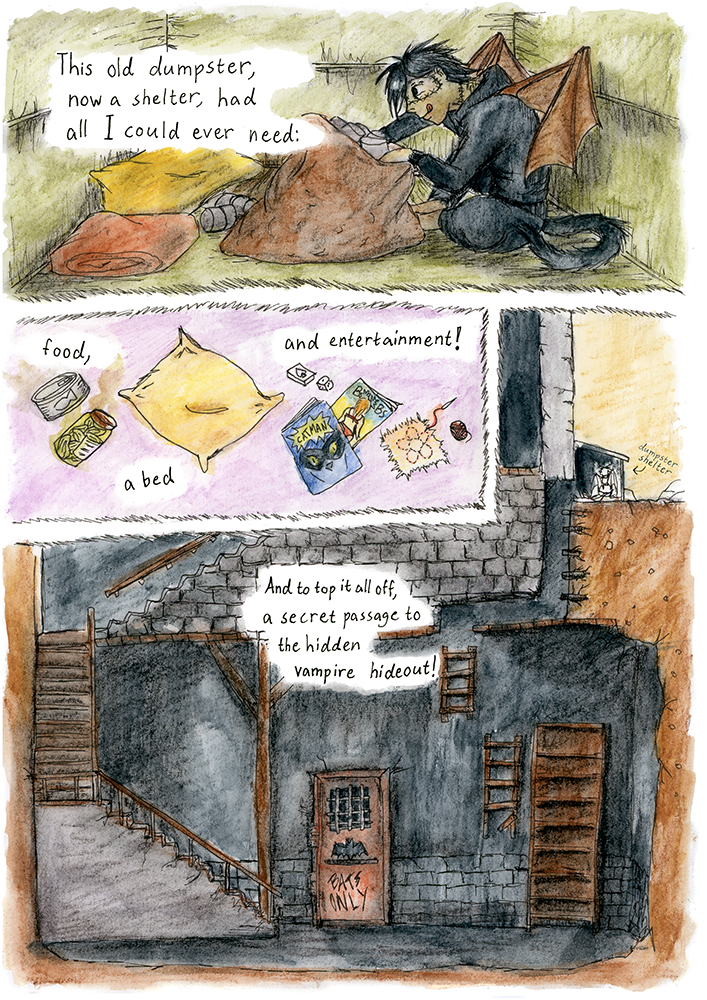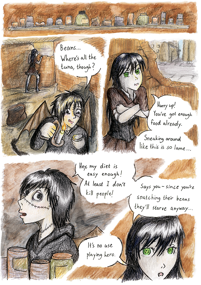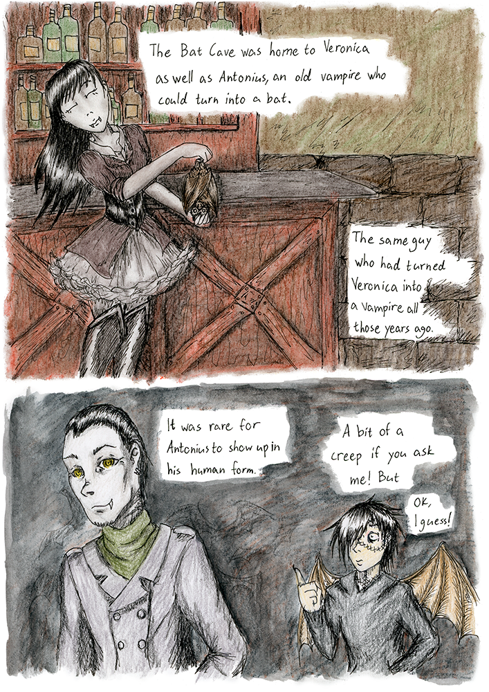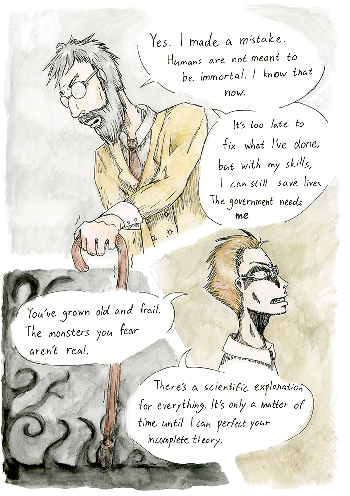 The Alpha Omega Codex takes place in a post apocalyptic world where all the myths are true. Felice was a dead boy but his scientist father brought him back from the dead. Now he has escaped his home and lives next door to a beautiful vampire girl Veronica. Dating a vampire is not easy though and then there are the monster hunting humans. Also a mysterious half vampire Roze wants Felice's help. Can a monster be a hero, too?