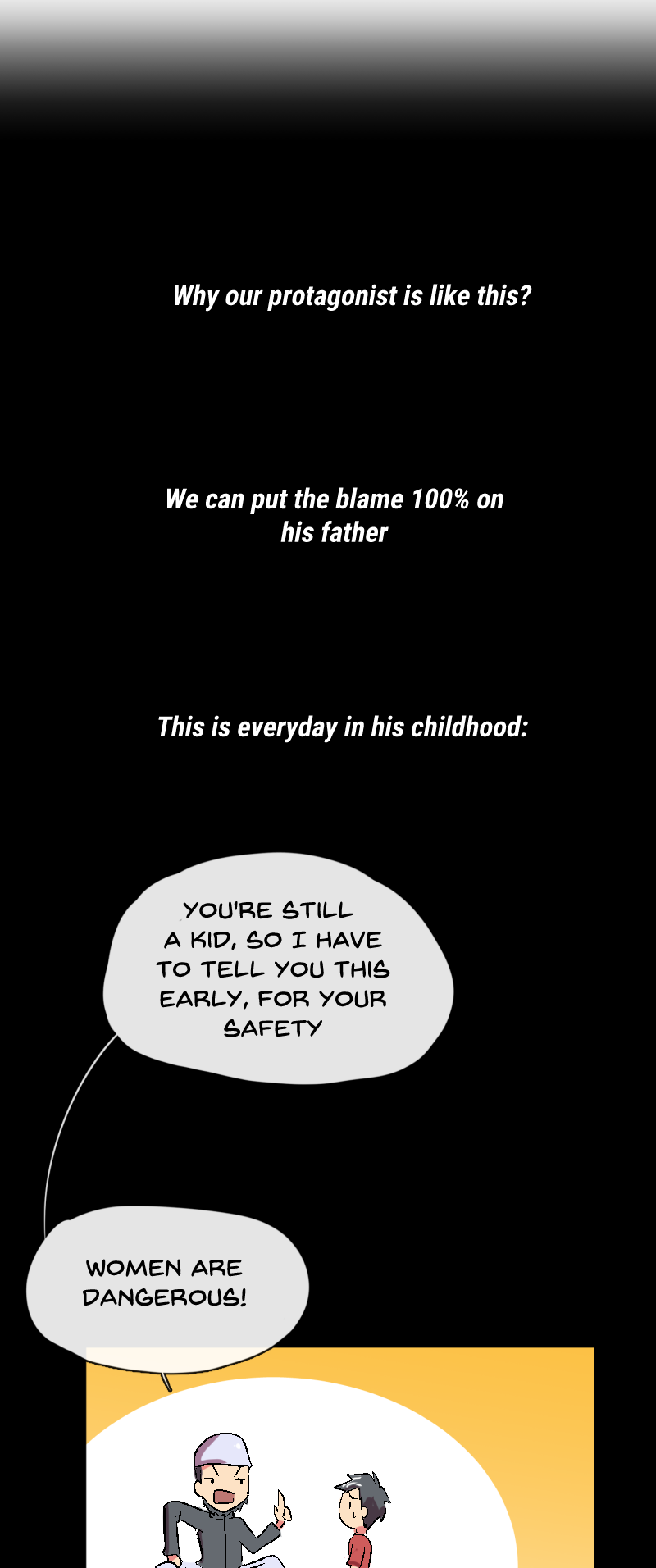 Honestly, the theme made me kinda scared to publish it, the misogynistic dad and all. But I really wanted to tell some stories related to it for some personal reasons. Well, its still a beginning anyway. I hope you enjoy it!