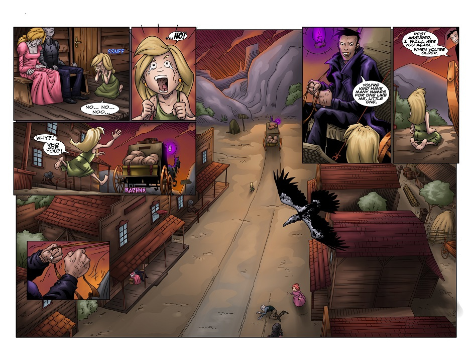 A stranger arrives in a small Western town - and only one little girl senses the evil they'd brought along with them. A horror short - just in time for Halloween. I'm going to release a few pages a week, leading up to Friday the 30th. Story by James E. Roche Lines by Tangra Colors and Letters by John Becaro