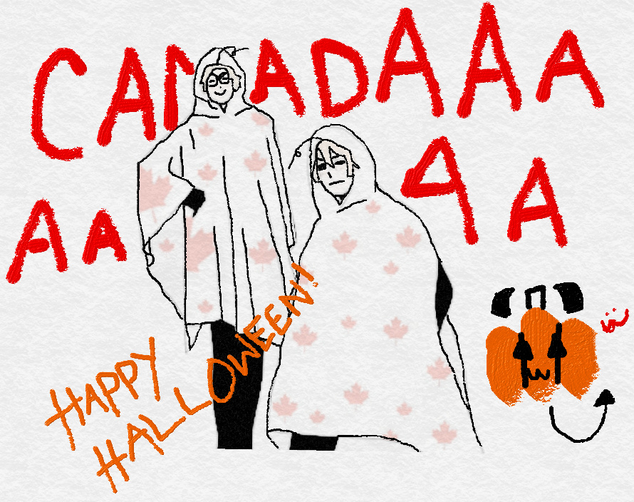 Have the crappiest Halloween drawing I have to offer. They're dressed in that Canadian poncho thingy thingy thingys............ Nevermind. Anyways, what are you guys being for Halloween?