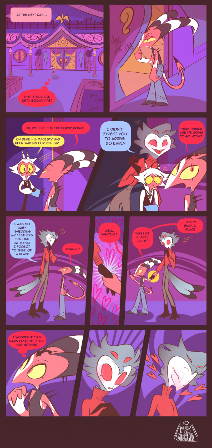 I finally uploaded the comic to a platform where it could be seen more comfortably! I hope you enjoy it. There is explicit language like the original show (created by vivziepop), this work is a doujinshi, it was made by a fan and therefore it is not canon, my native language is Spanish, sorry if there are spelling mistakes, Moxxie was not injured in the process, don't worry ;D.