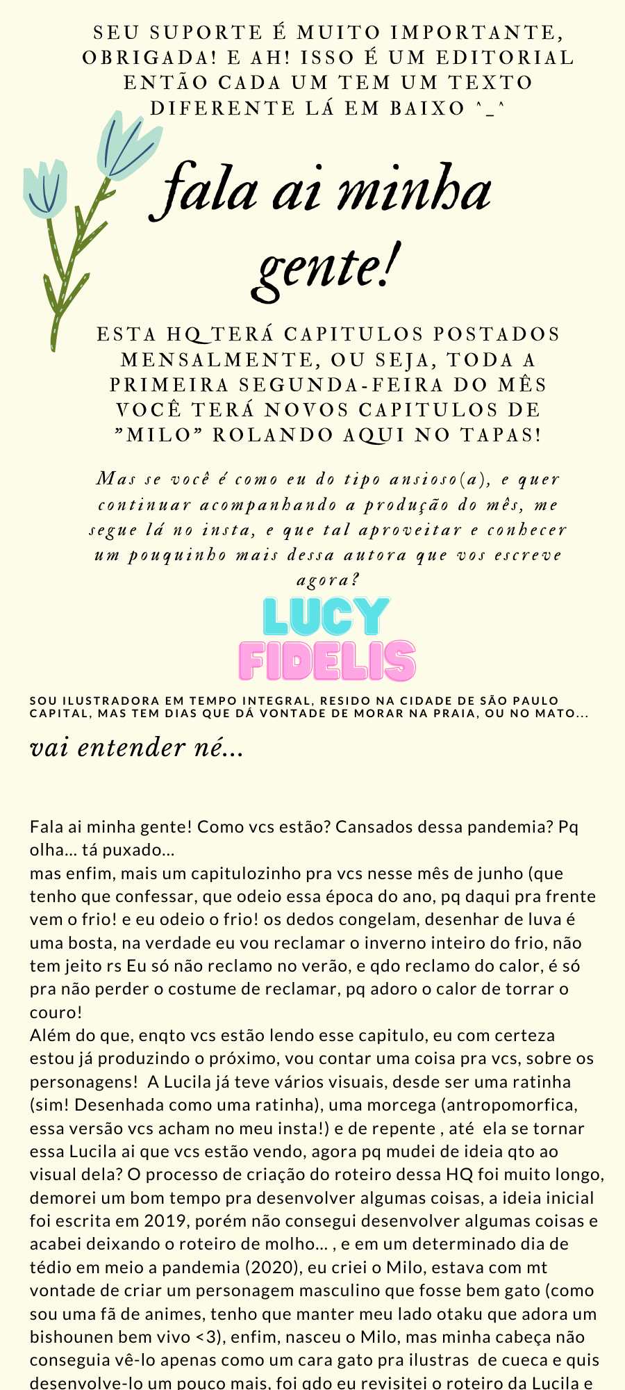 Perder pessoas queridas nunca é fácil, e lhe dar com isso sozinho, pior ainda... Correção ortográfica dos quadrinhos: Odisseia Consultoria Literária. Roteiro e Arte : Lucy Fidelis
