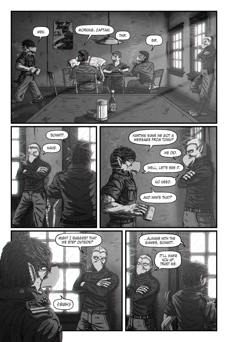 Captain Hans Schmutzesser awakens from dreams of his past to face another dull morning in the present… That is until he’s delivered some surprising news…