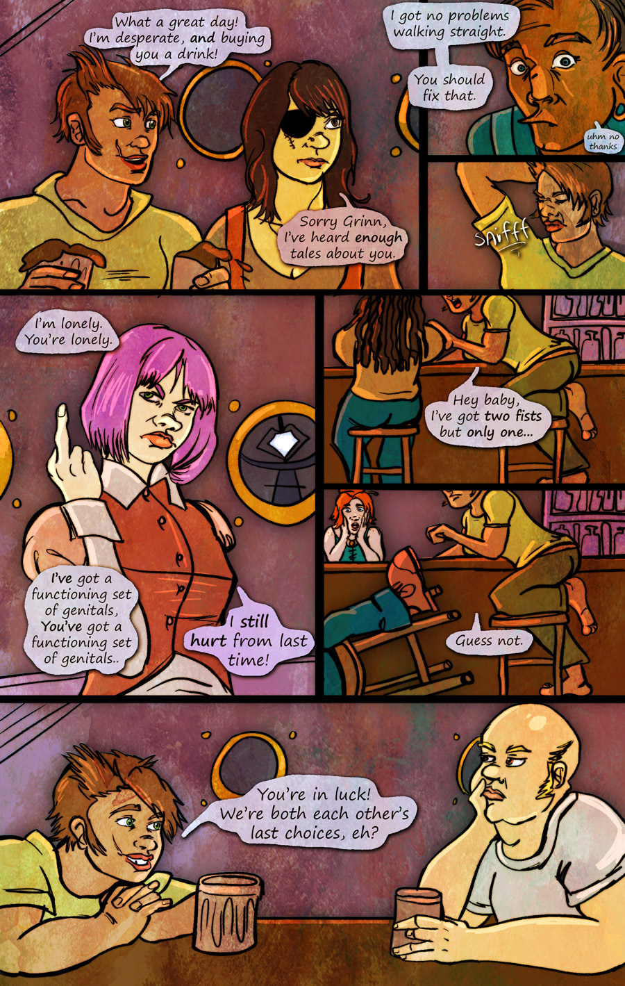 Prepare to get a fetish unlocked. Grinn fights and loves her way through surviving in a land where death has been outlawed, and dying leads to eternal servitude to the corrupt Keepers. Featuring a very intense story and world, handled with immature humor. Never, ever safe for work.