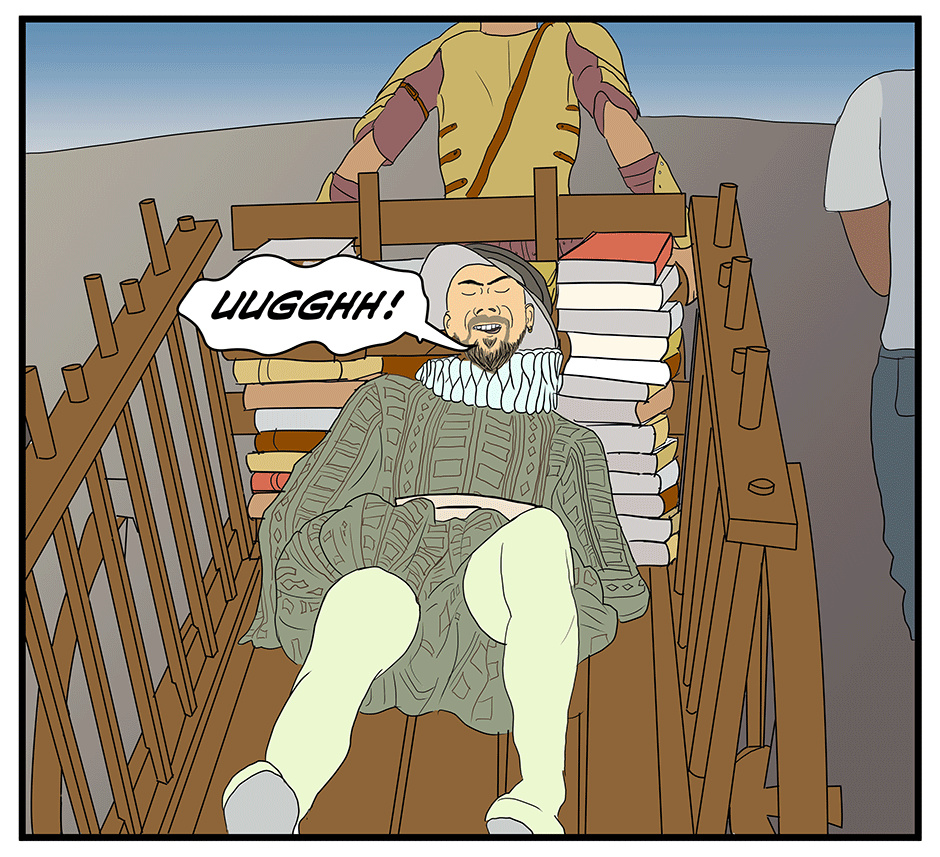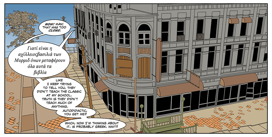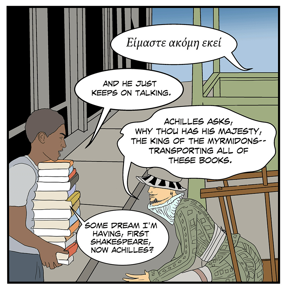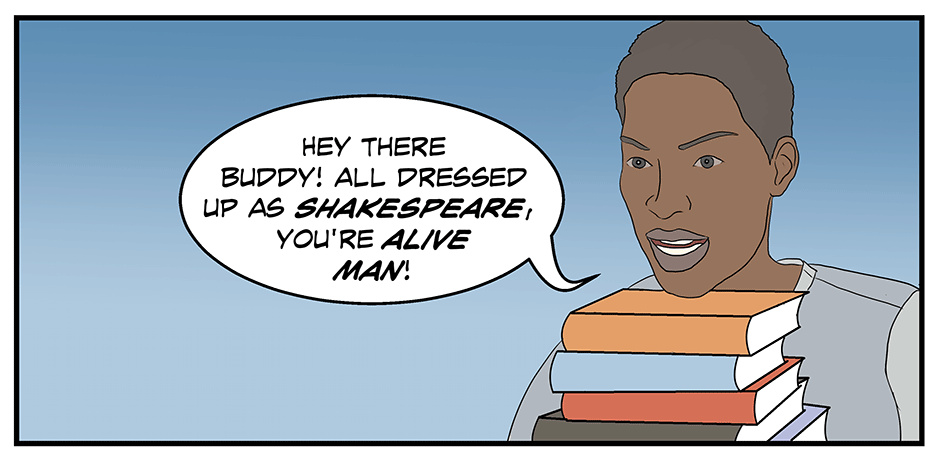 Sabato, our ‘no-luck’ savant and hero, in this weird comedic adventure, wakes to find London transformed into the ‘utopian’ City of Reason, with all of its inhabitants living in uniformity under a suffocating Puritanical regime. He’s also stumbled upon an ability to transfer the spirit of fictional characters into the credulous residence of Reason, whilst inspiring a ragtag group, including Shakespeare and Achilles, to save the people of the city and figure out what the ‘HELL’ is happening to him.