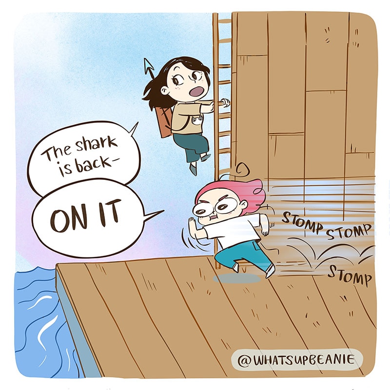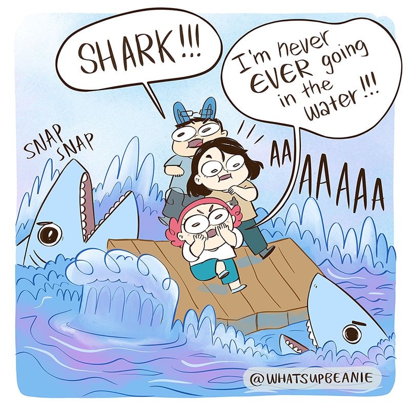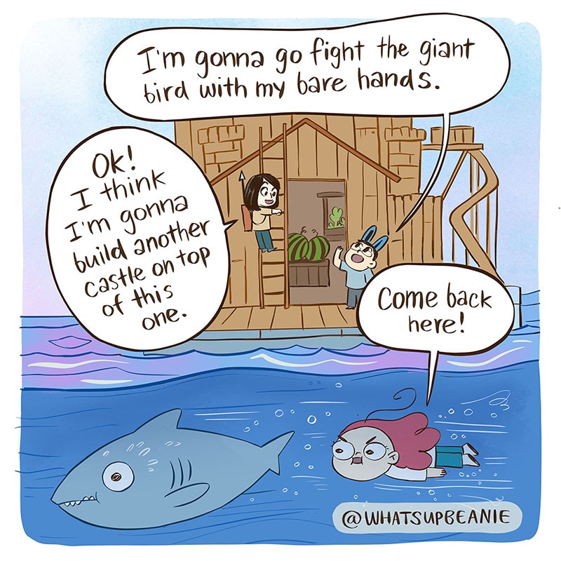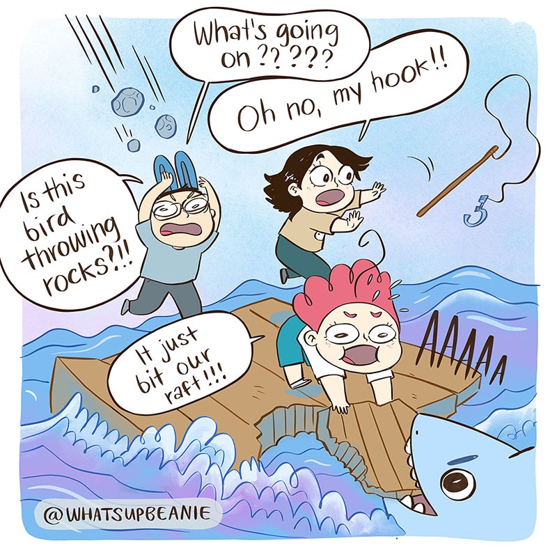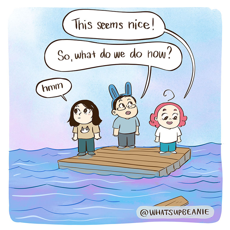 When you start a new game vs when you've played it for a while, haha. I play lots of games with my two friends @4amshower and @catandcatcomics so I wanted to draw us playing Raft. You have all given me a lot of great recommendations for multiplayer games a few posts ago! Thank you for those! If you have any more, please feel free to drop them in a comment :).