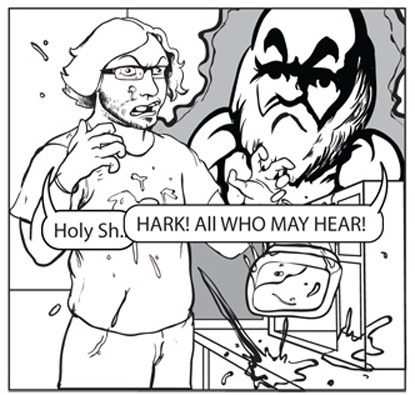 FruitLands is a web-comic about Gentlemen, Super-Heroes, Ladies, Sharks, Games, and brief uncomfortable embraces! ...and also some wrestling.