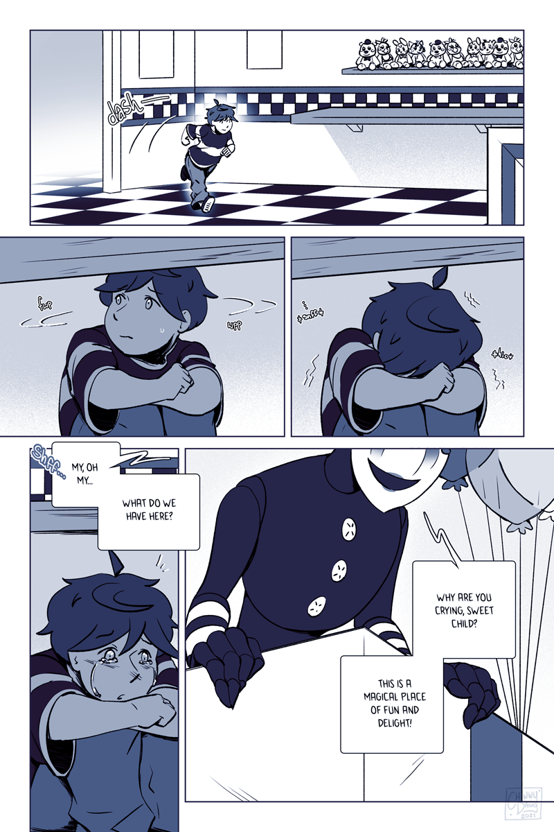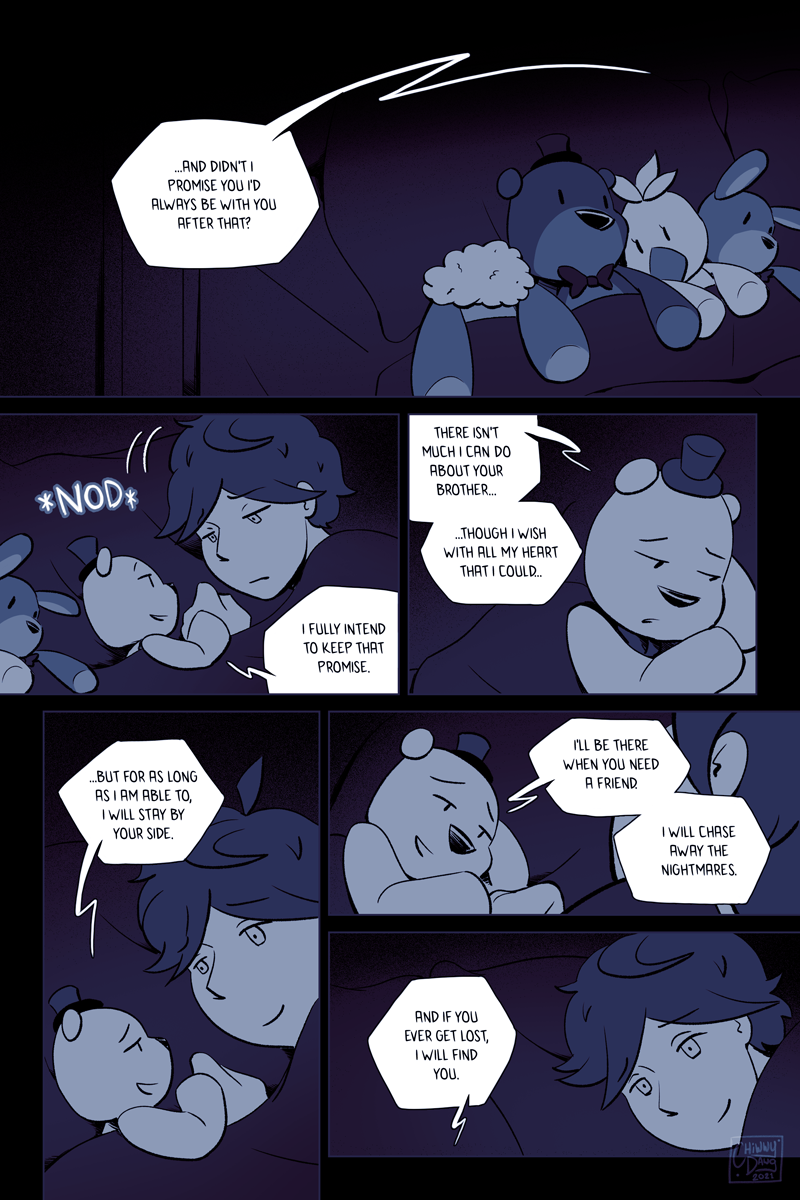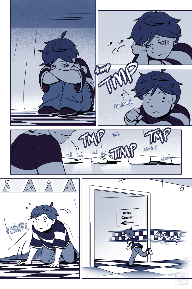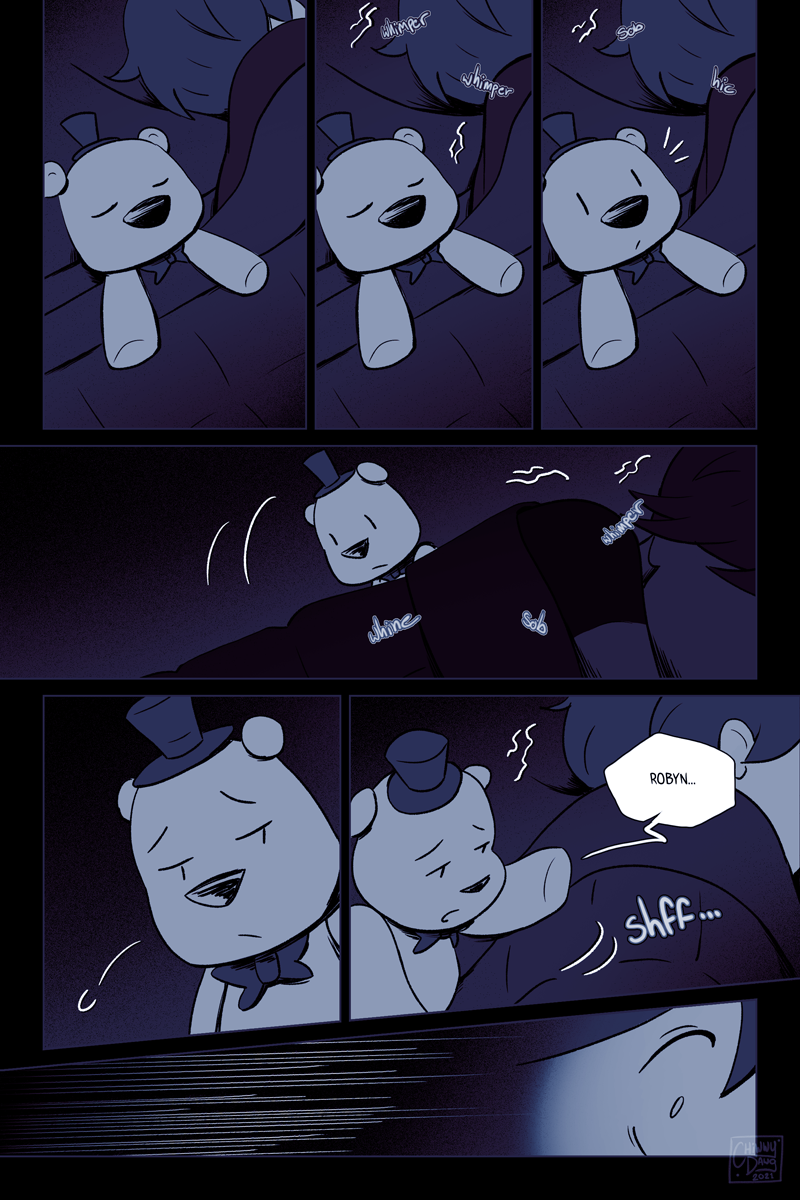 This is the single-most longest upload I've ever done. I debated on whether to split it up, but it felt pretty important to make sure that this sequence was read in a single sitting. I didn't feel like chopping it up, releasing it normally via two pages weekly (which would take five weeks, since this part consists of 10 pages,) and then stitching it back together again when it was completed. That method works fine for Webtoons and Tapas, but Deviantart is structured differently so I decided to just dump it all in one go.