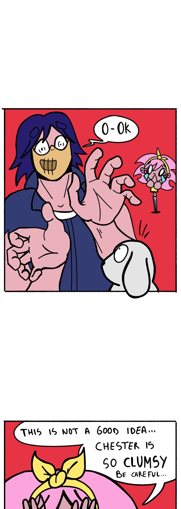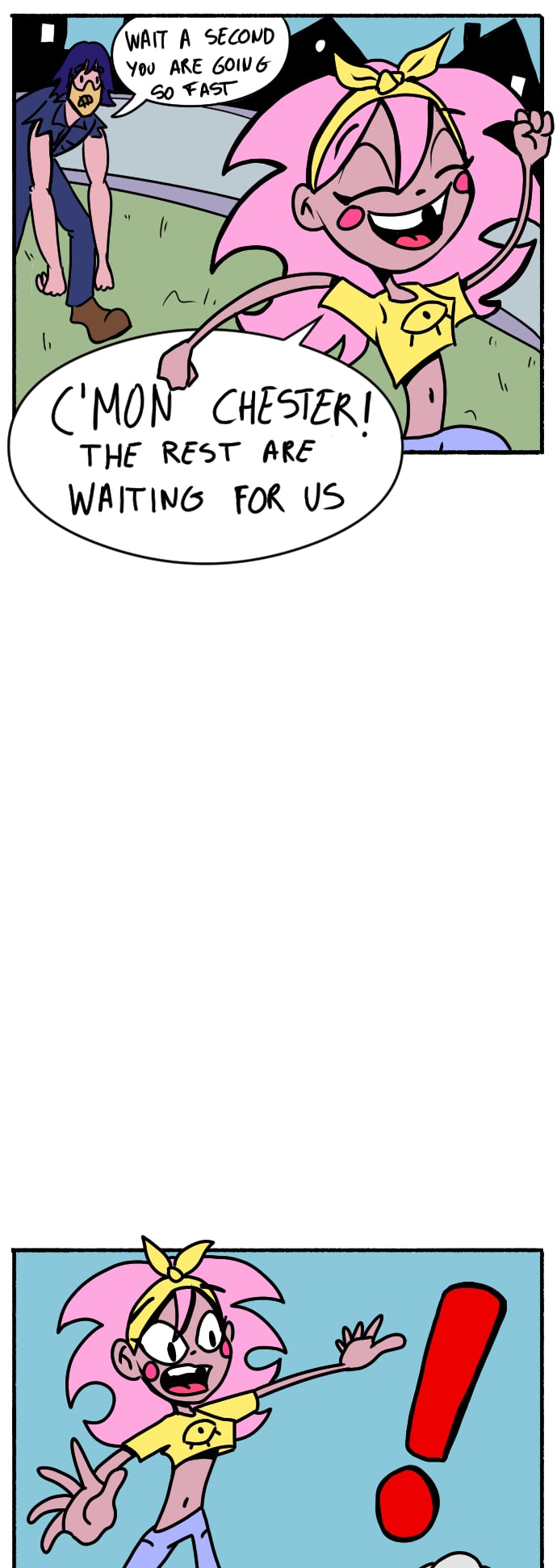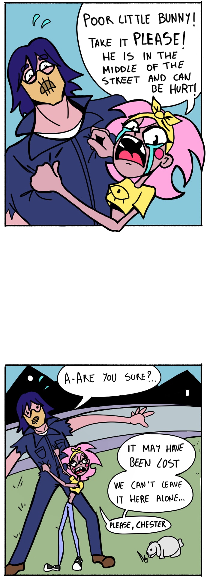 Aria can't stop beeing excited of everything, and Chester is so slow to hurry up. They have met with the rest of friends and are late, but a surprise appeared in the middle of the street. A bunny! Maybe it will be in dangerous staying alone and they have to save him, but if everyone knows Chester, it's because of his clumsiness... at extreme levels.