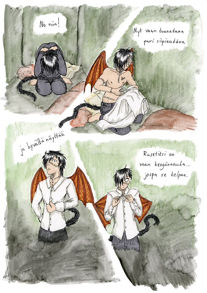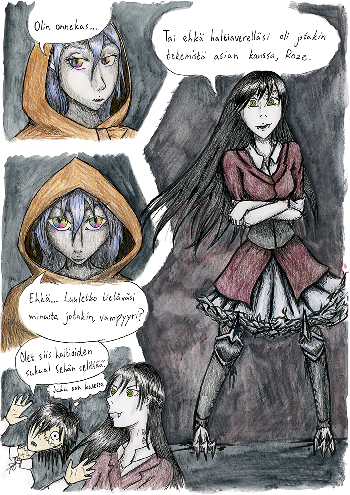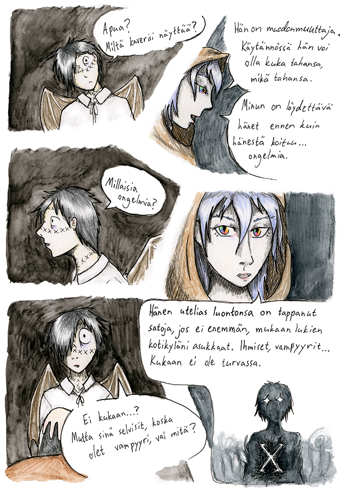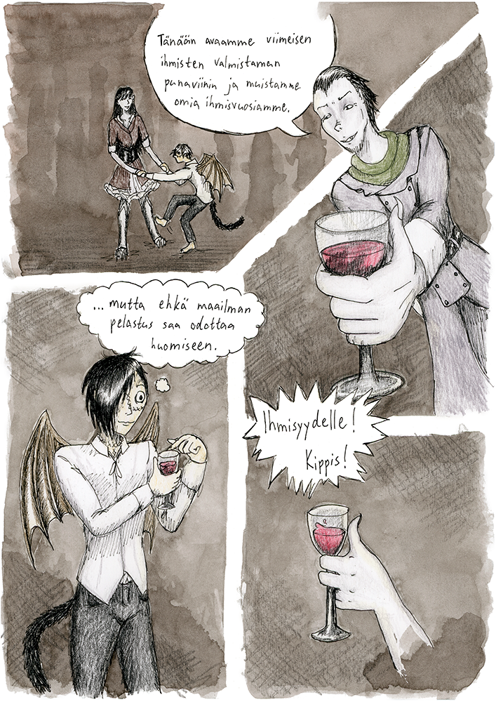 This comic is in Finnish. For the English version check out The Alpha Omega Codex.