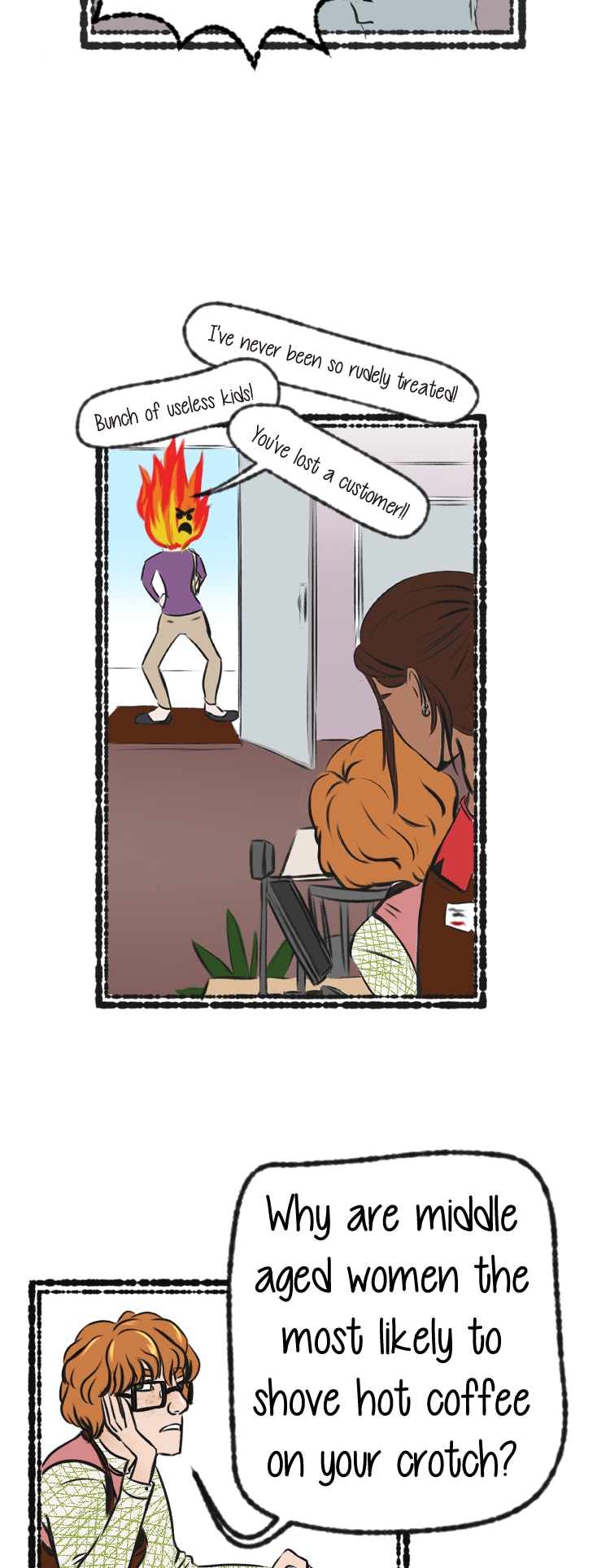 Working in customer service is...literally the worst. River and Josh get to experience the nightmare that is an angry middle aged woman, and somehow live to tell the tale. Before the smoke has cleared from their confrontation, River finds himself suddenly shirtless in front of someone super random. Because of course he does.