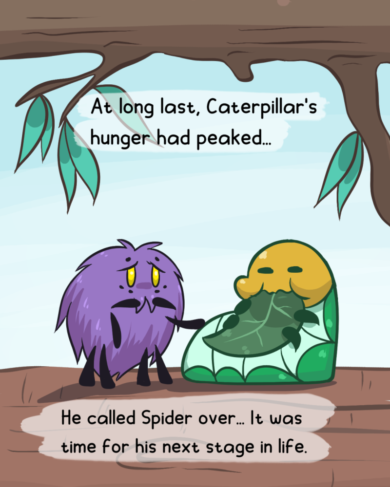 Part two is here! Spider helps out the friendly Caterpillar until he is ready for the adult world. I will also be taking a brief hiatus after this to focus on Mahoju and other projects. But I will plan to have new stories by August!