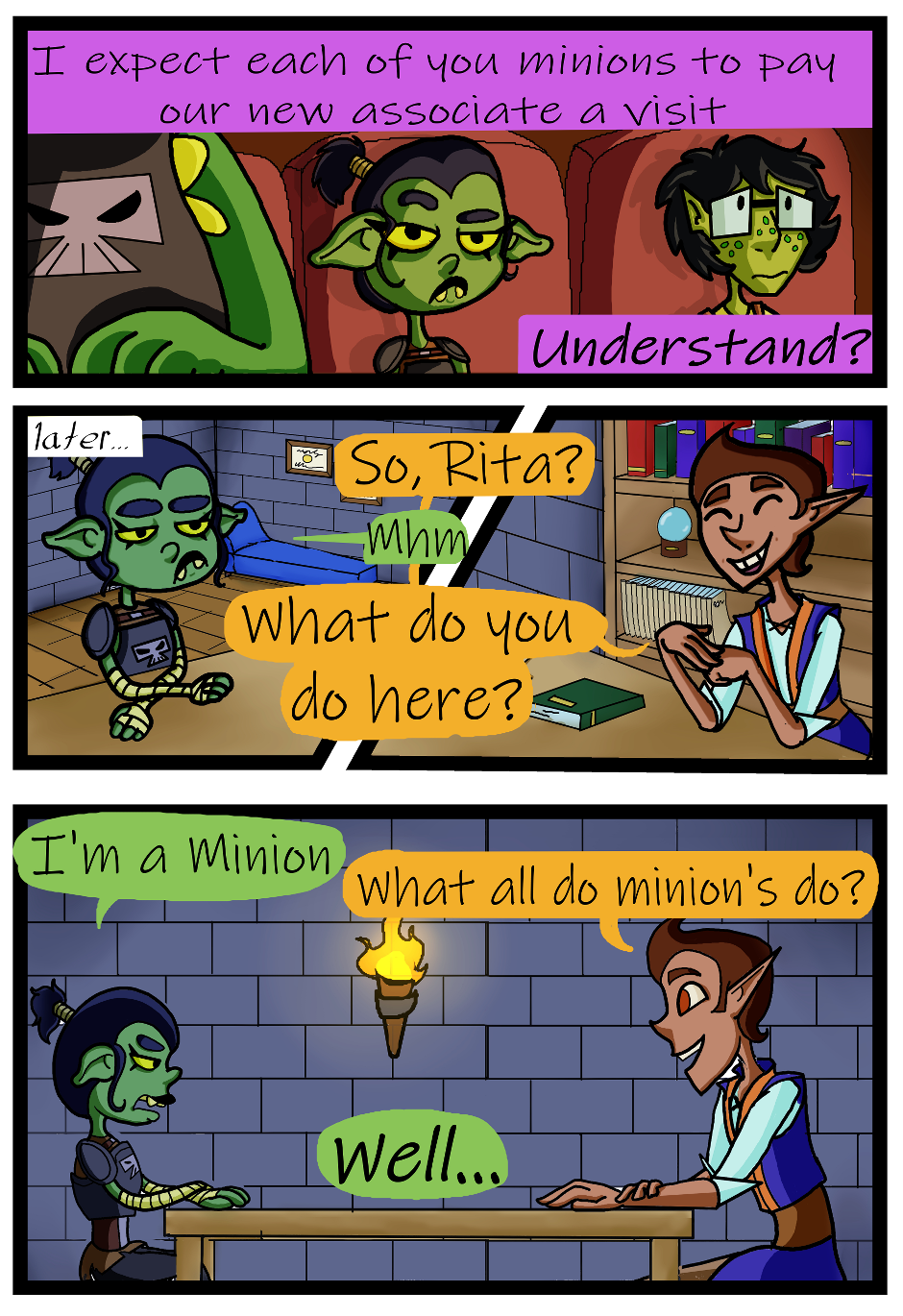 In a world of high fantasy, where heroes roam and villains are lurking in the shadows, adventure waits around every corner. Unfortunately for Rita Kerowl, a goblin working as a dungeon minion under the local necromancer. When the company hires a psychologist, she finds herself taking full advantage of the opportunity to finally tell someone exactly what it's like working in the disservice industry. And maybe get some help with the toll her job has taken on her mental health along the way.