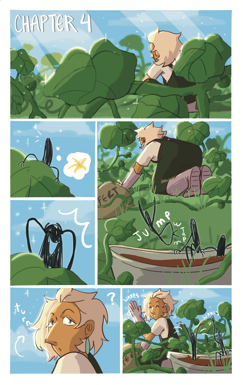 A non-binary witch named Hal inherits a farm from their distant Aunt. They’re going to do their best at farming with help from friends new and old. Why does everything seem to go wrong? Updates Tuesday and Thursday \(^u^)/ (read from left to right)