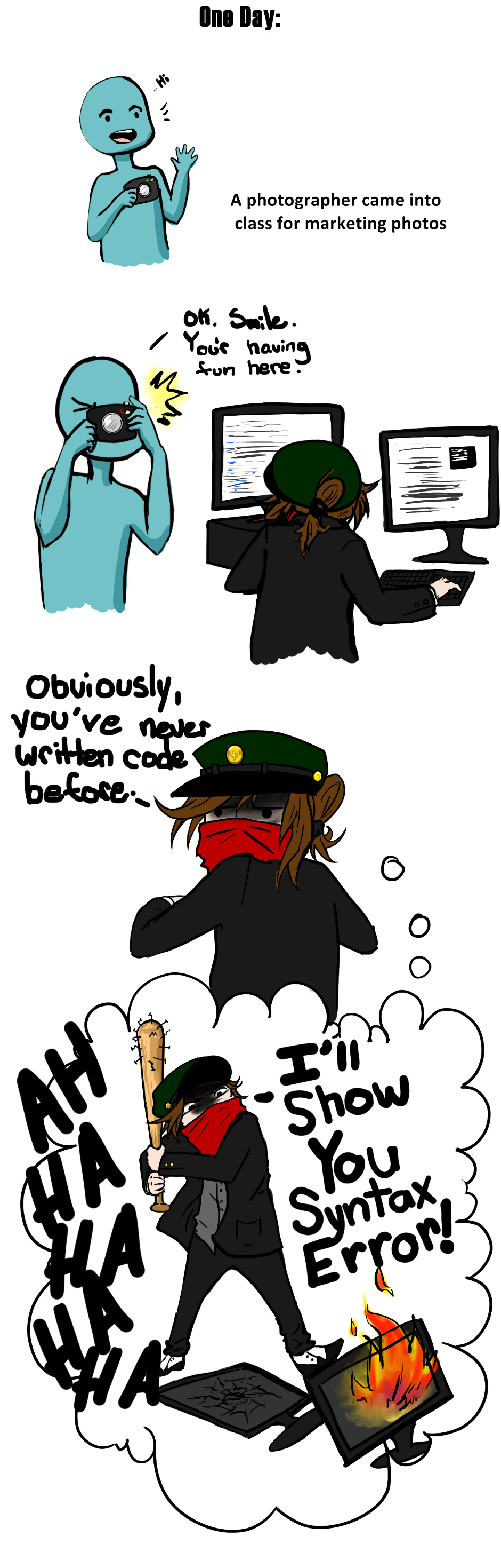 Hahahaha having fun while writing code *cries while thinking about the tiny bits of code I've written/butchered*