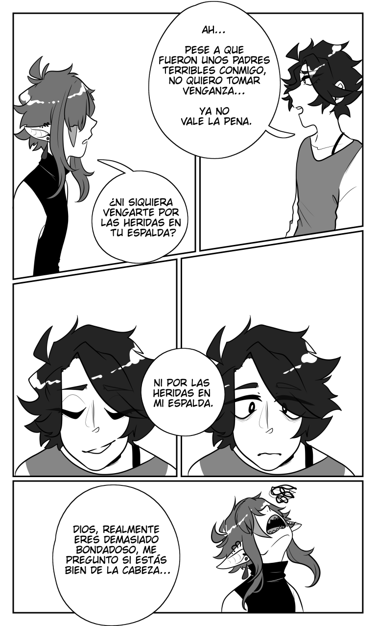 Una extraña criatura de ropajes llamativos y piel rosada se aparece ante él, asegura poder curarlo y salvar su vida a cambio de un trato justo.