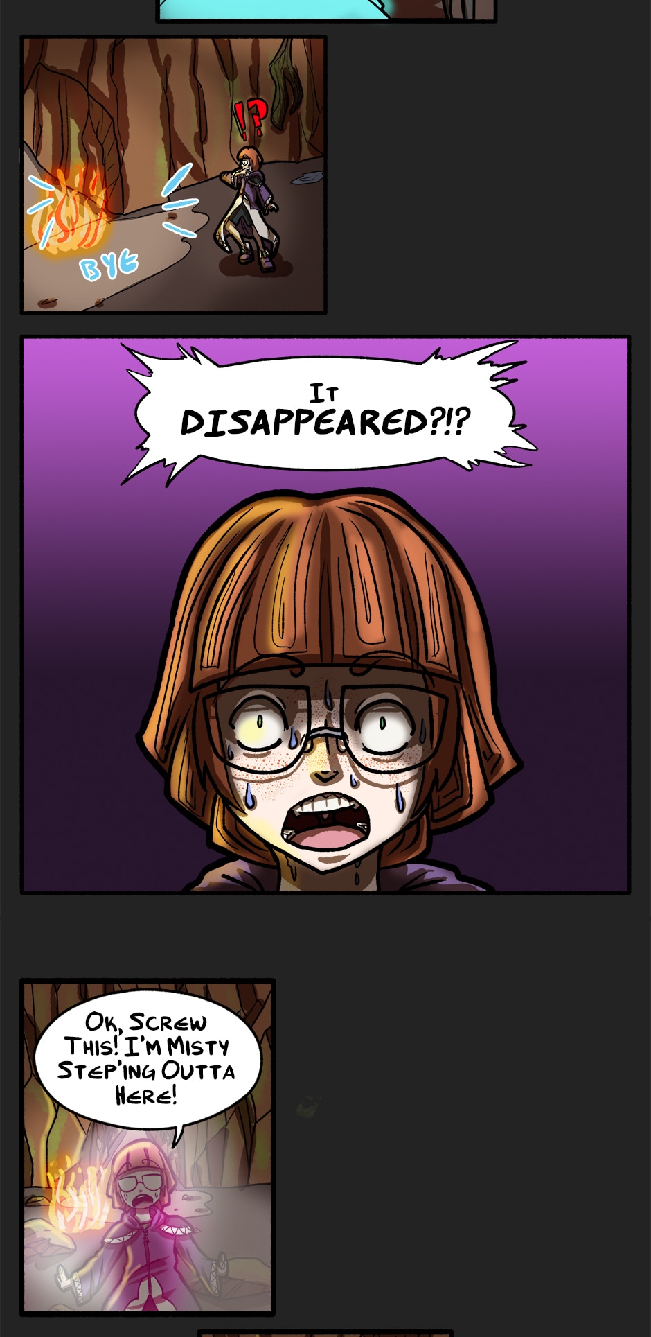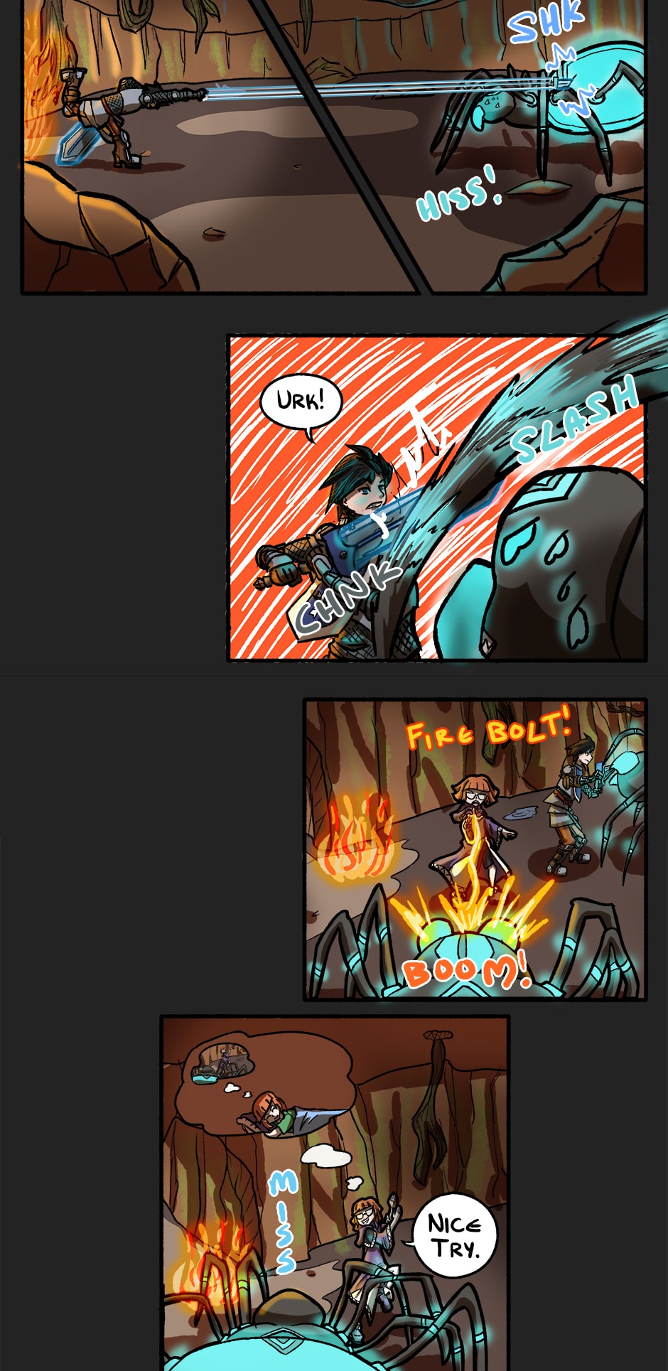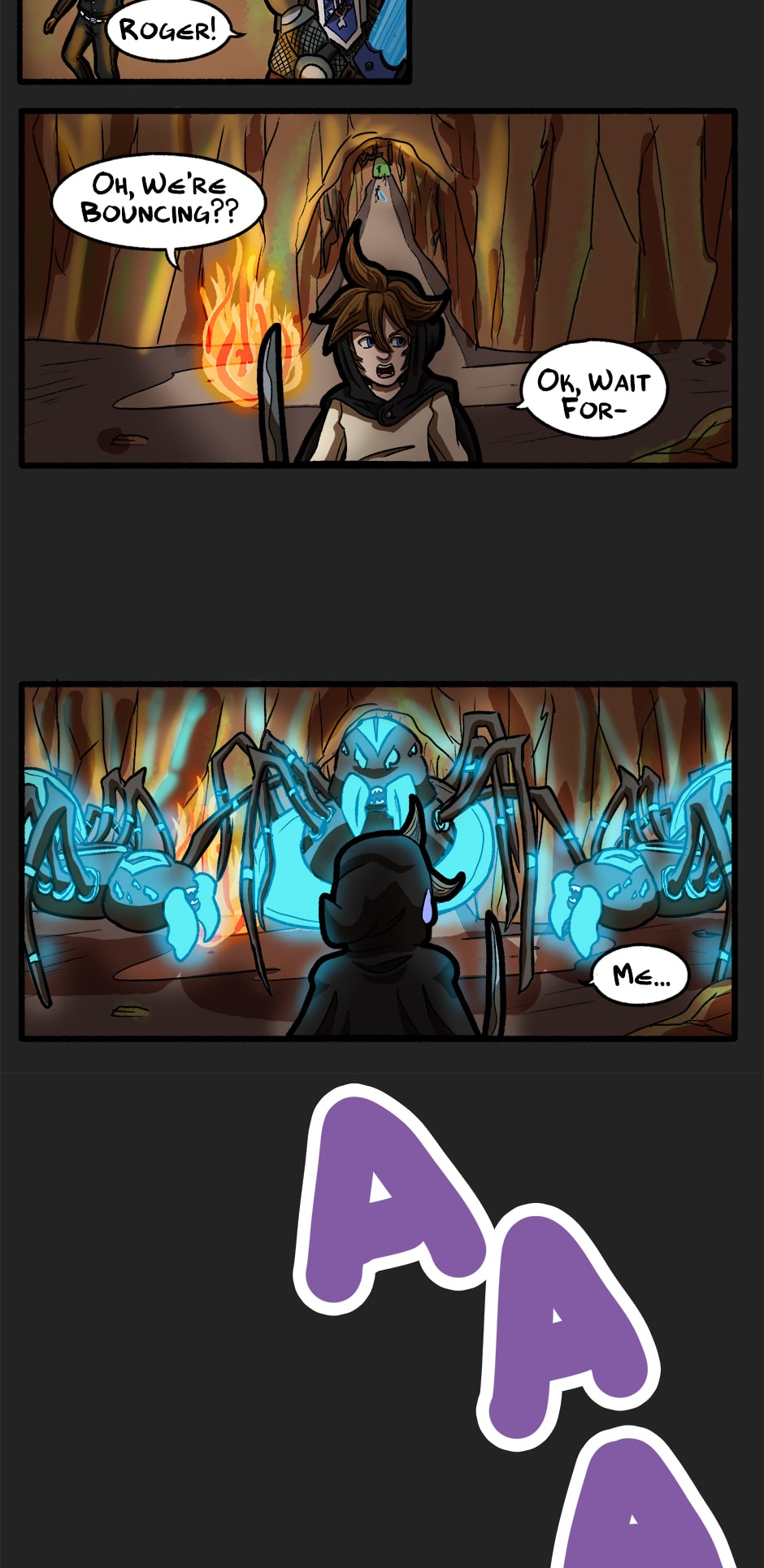 The party understandably panicked as they found themselves facing down giant *disappearing* spiders. As Noel's player, I learned the valuable lesson after this encounter about being the last to flee as the tank- Two very nearly died ^^;;