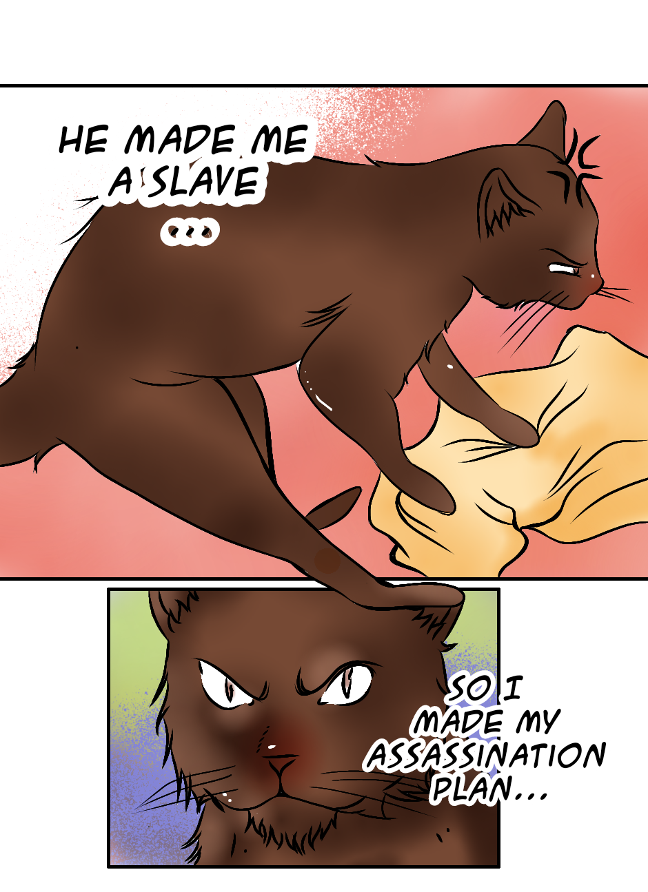 rupetti, a talking cat, thinks of a way to get revenge for being the owner.
