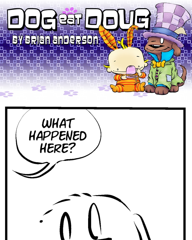 Dog eat Doug follows the daily exploits of Sophie, a cheese-loving chocolate Lab with a nose for the nuances of sarcasm and irony, and baby Doug, a healthy, happy newborn with no concept of jealousy and a limitless curiosity. Along with steampunk cats, comedy club squirrels and a steady stream of quirky foster dogs.