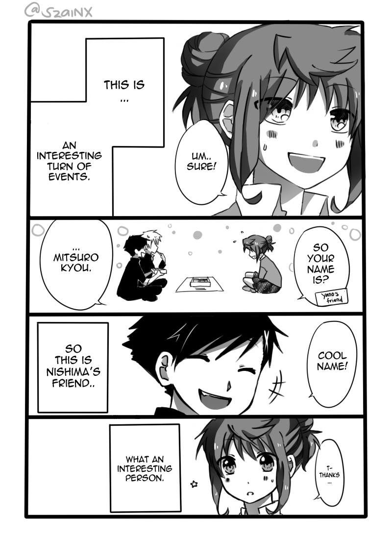 The story follows a fellow high school student, Mitsuro Kyou, who is having problems with making friends for particular reasons. What kind of highschool life will she have?