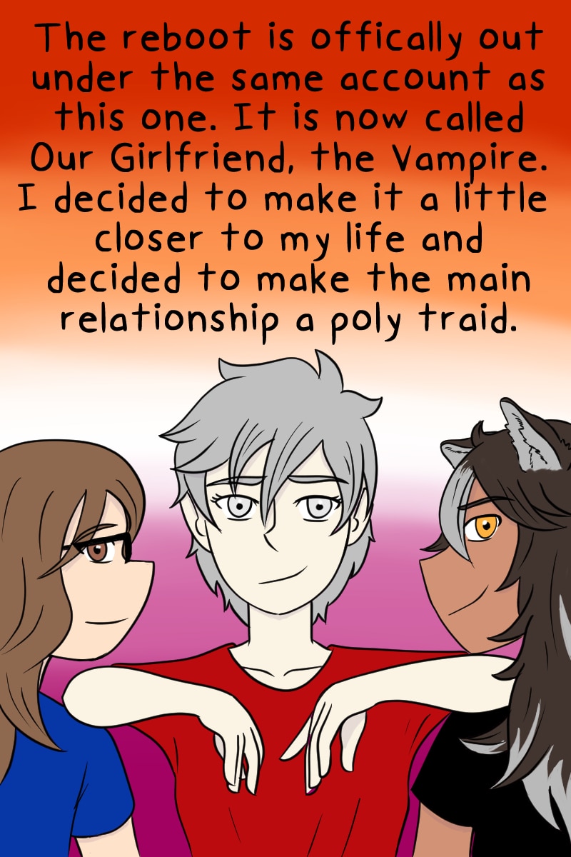 The reboot is now live. I decided to add a bit more to the story and make the romance a more slow burn in the beginning. I also wanted to make them polyamorous was I myself am. Like most of my works I want to make things that representation of things I didn't have growing up. Hope you all like the reboot and I thank you for all of your support.