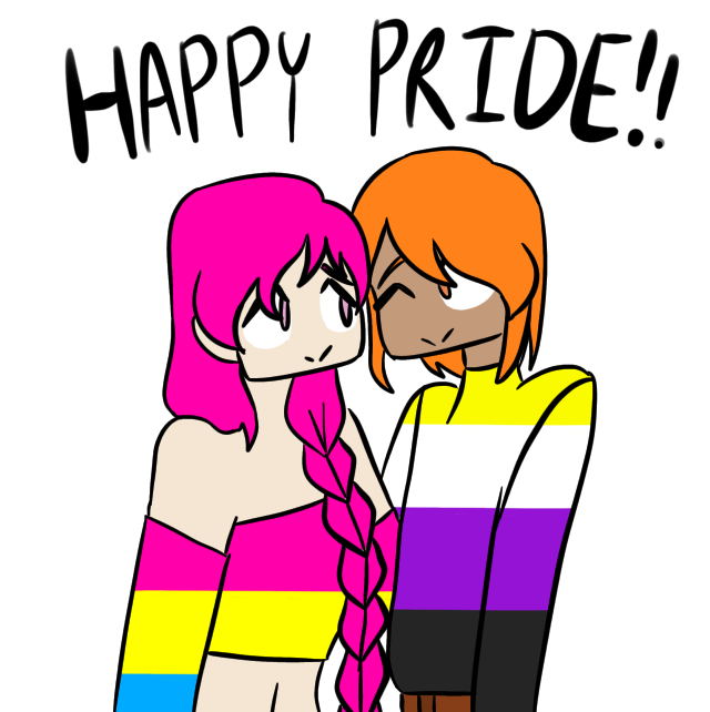 Blue and red, the calm and collected male with a chaotic girl. Black and white, a scholarly girl with a shy girlfriend. Yellow and green, sunshine boy and soft plantarian male. Pink and orange, flirty girl and dumbass nonbinary. And Purple, a sassy asexual. Enjoy some adorable and funny interactions!