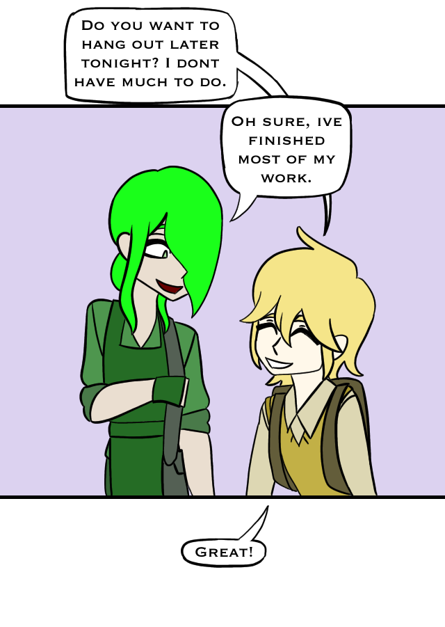 Blue and red, the calm and collected male with a chaotic girl. Black and white, a scholarly girl with a shy girlfriend. Yellow and green, sunshine boy and soft plantarian male. Pink and orange, flirty girl and dumbass nonbinary. And Purple, a sassy asexual. Enjoy some adorable and funny interactions!