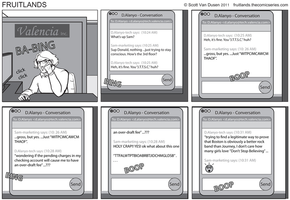 FruitLands is a web-comic about Gentlemen, Super-Heroes, Ladies, Sharks, Games, and brief uncomfortable embraces! ...and also some wrestling.