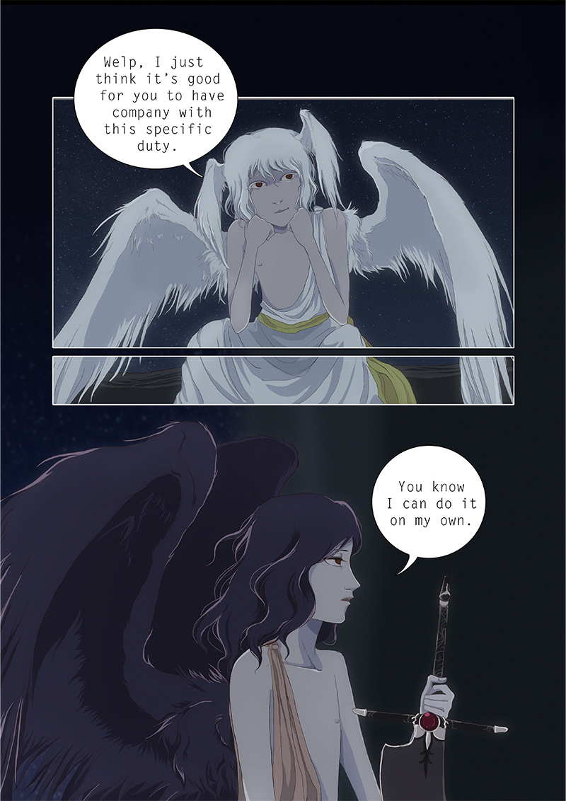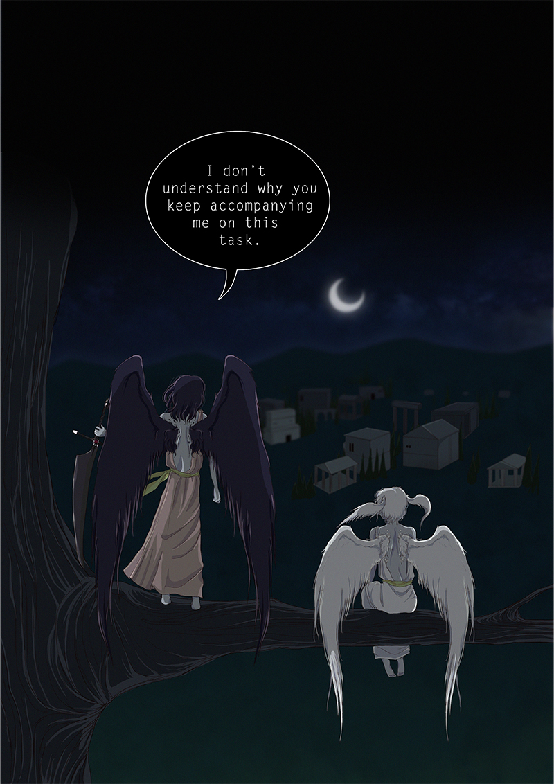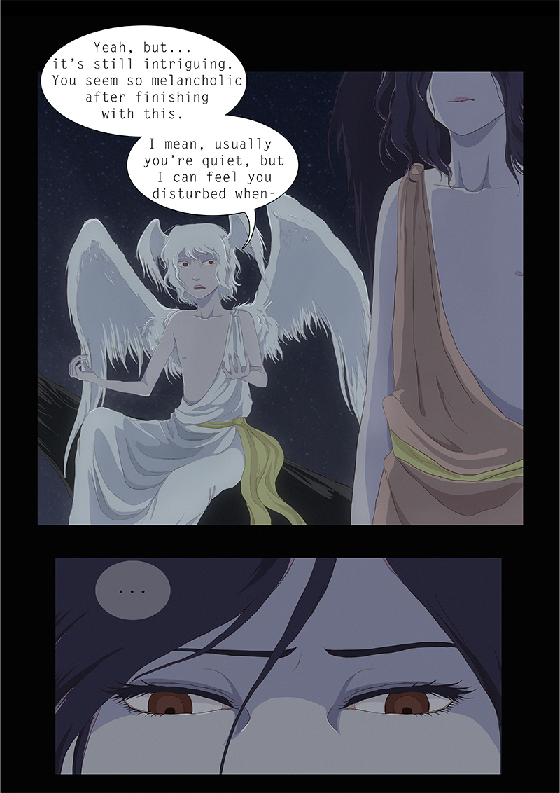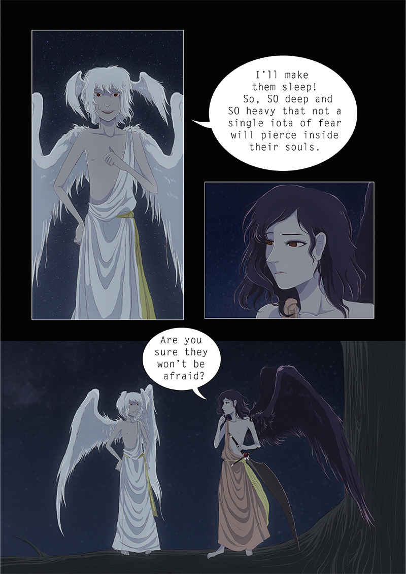 Hypnos and Thanatos share the same face, the same strength and a close bond in spite of their opposite personalities: While Sleep is gentle and embraced through his friendly nature, Death has grown cold and self-absorbed under the weight of his endless duty.