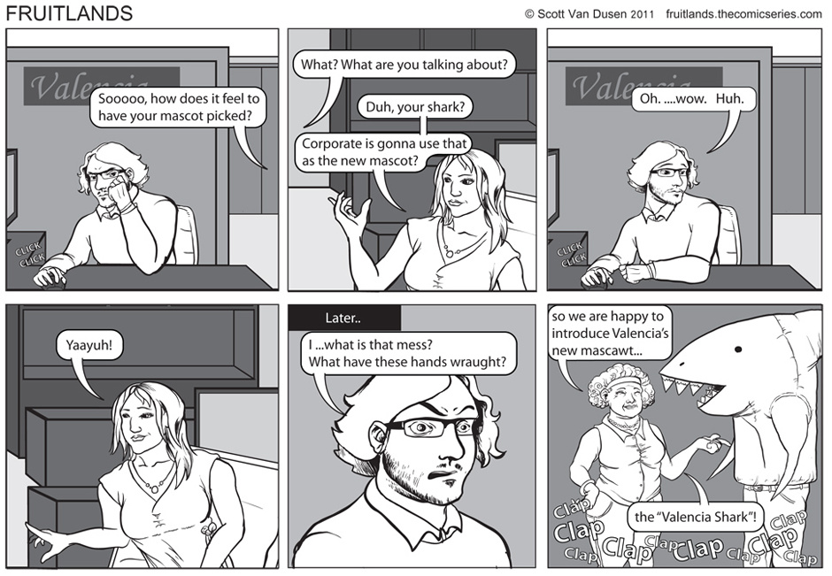 FruitLands is a web-comic about Gentlemen, Super-Heroes, Ladies, Sharks, Games, and brief uncomfortable embraces! ...and also some wrestling.