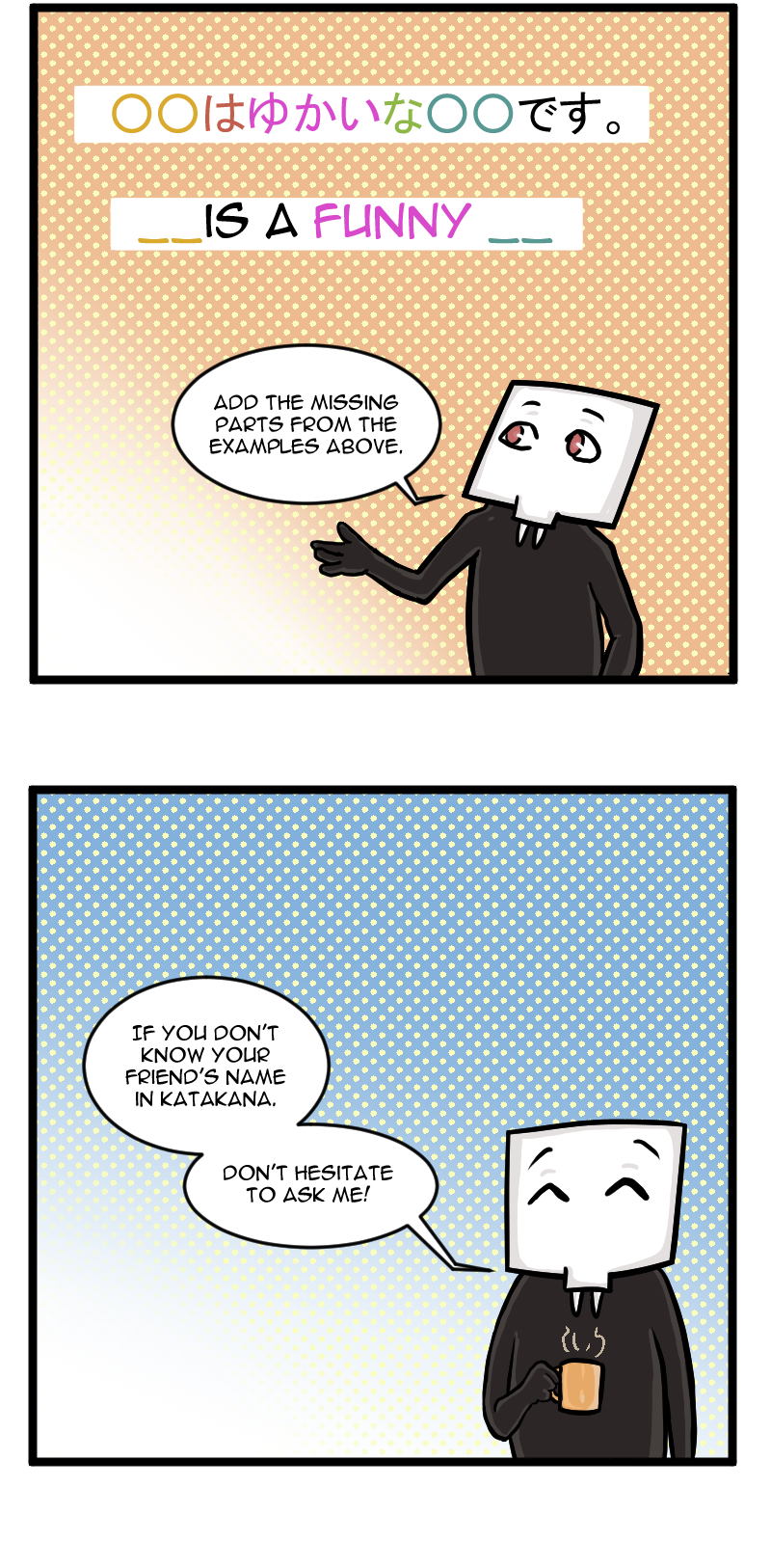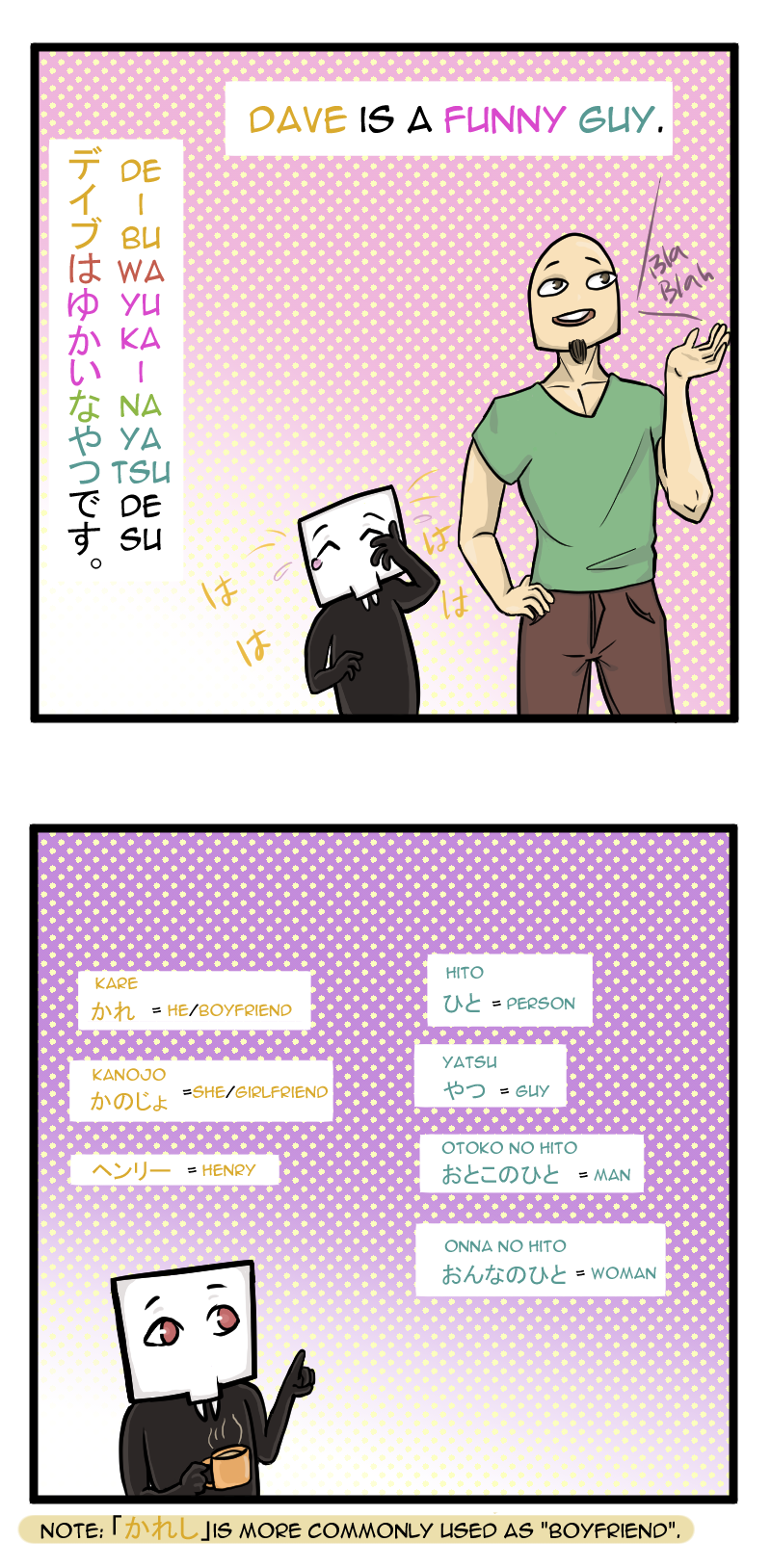 I made this comic for my friend Henry to teach him fun and useful Japanese. I thought it would cool to share it with all you who are eager to learn Japanese as well.