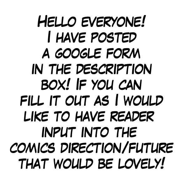 On another note! I made a google form to ask readers questions to do with the direction the comics future will be taking! If you can fill it out that'd be cool! Sorry to be a pain on everyone! >3< Its mostly to do that this story arc/season is nearly finished and I need to write more soon so I figured Id ask some questions for some reader input! Thank you!