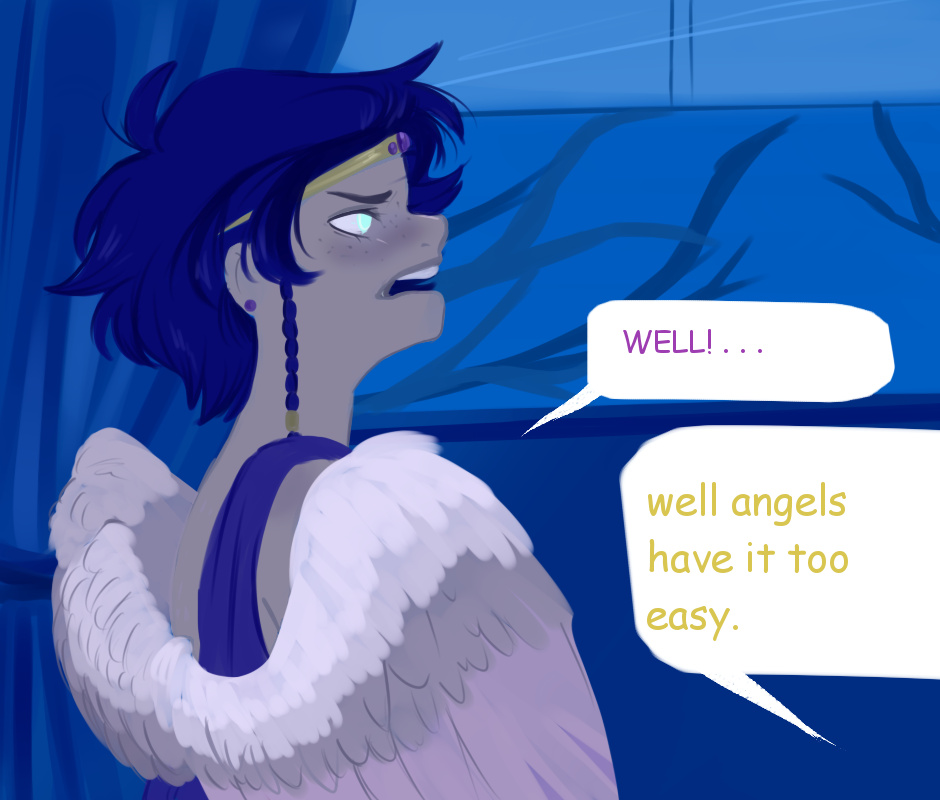 Melancholy (Mel) is kind, soft spoken and completely oblivious to all things flirtatious. He's also a demon, That's the problem. Mel doesn't like his job and he has seemed to give up all hope until he meets a beautiful, kind and slightly feisty angel named Adonael (Don). Together they embark on an adventure in the pursuit of a new life, a change of fate, and maybe even a little love on the way. With its ever present comedic undertones Crowns & Collars is a wonderful story with lovable characters and beautiful art.