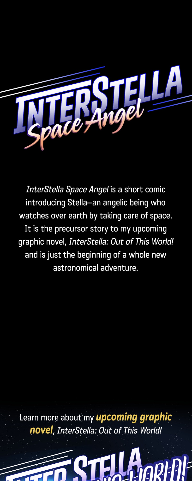 Meet Stella: the angelic being who watches over earth…literally! She’s the one in charge of taking care of the cosmos. From sweeping the rings of Saturn, to replacing burnt-out stars—she’s got every space chore under control. But even with every star at her fingertips, she still wonders what life is like on earth, and is determined to not only find out, but to also somehow offer her services to the people of earth.