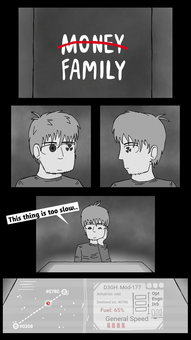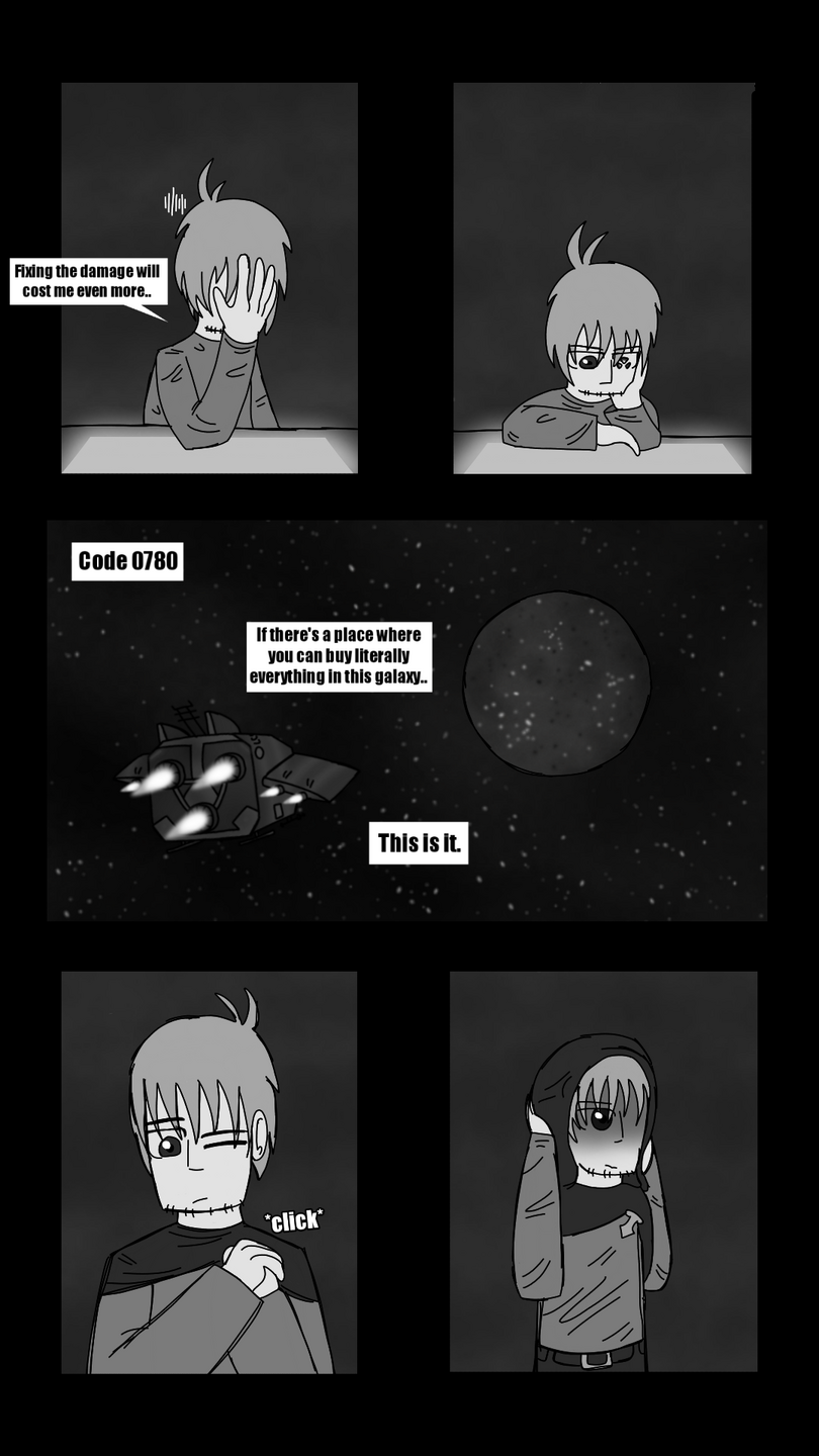 Mark is making his way to 0780 - A mostly desolate planet, mostly used for bandit gatherings, weapon markets and as a hiding spot for lots of criminals, with the hope of being able to gather a competent team to help him out in the hunt. On his way there though, his ship gets severely damaged when passing through a hard to detect a meteor belt. This makes Mark arrive on the planet with an already damaged ship. Not the most pleasant start.